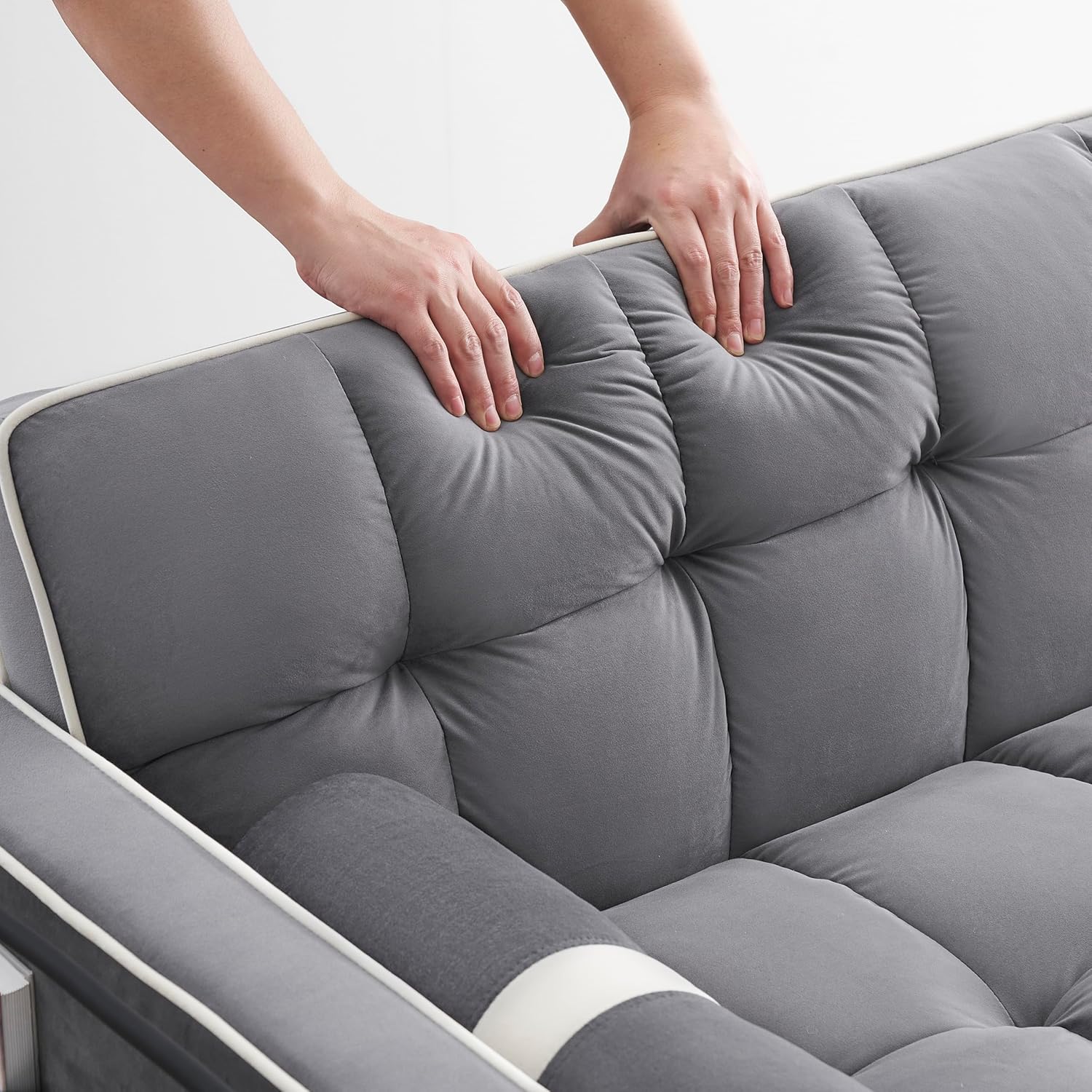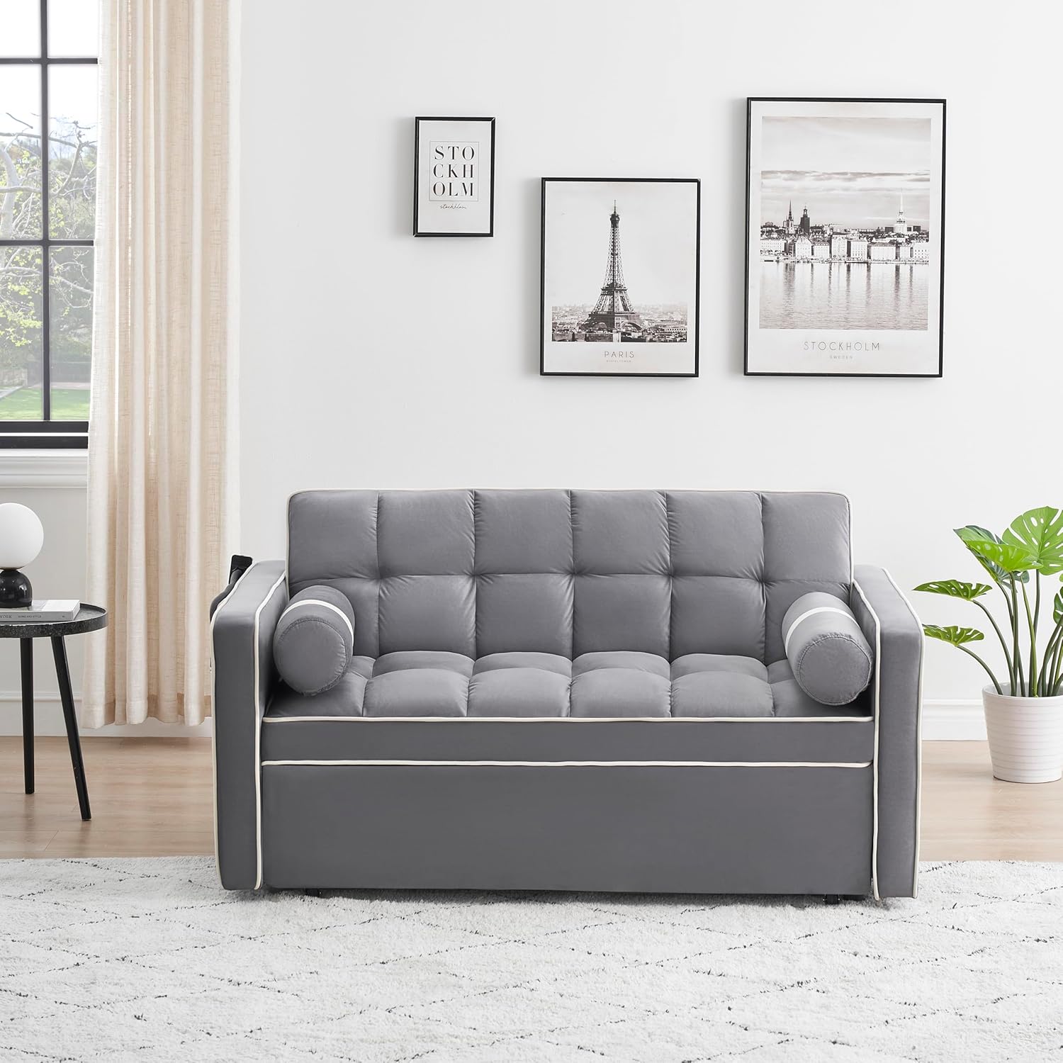Sleeper Sofa Couch w/Pull Out Bed, 55" Modern Velvet Convertible Sleeper Sofa Bed, Small Love seat Sofa Bed w/Pillows & Side Pockets for Small Space, Living Room, Apartment,Gray