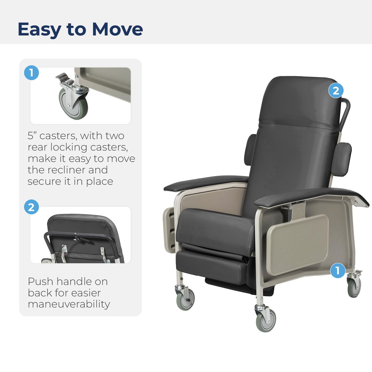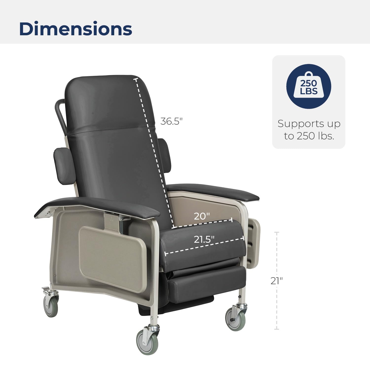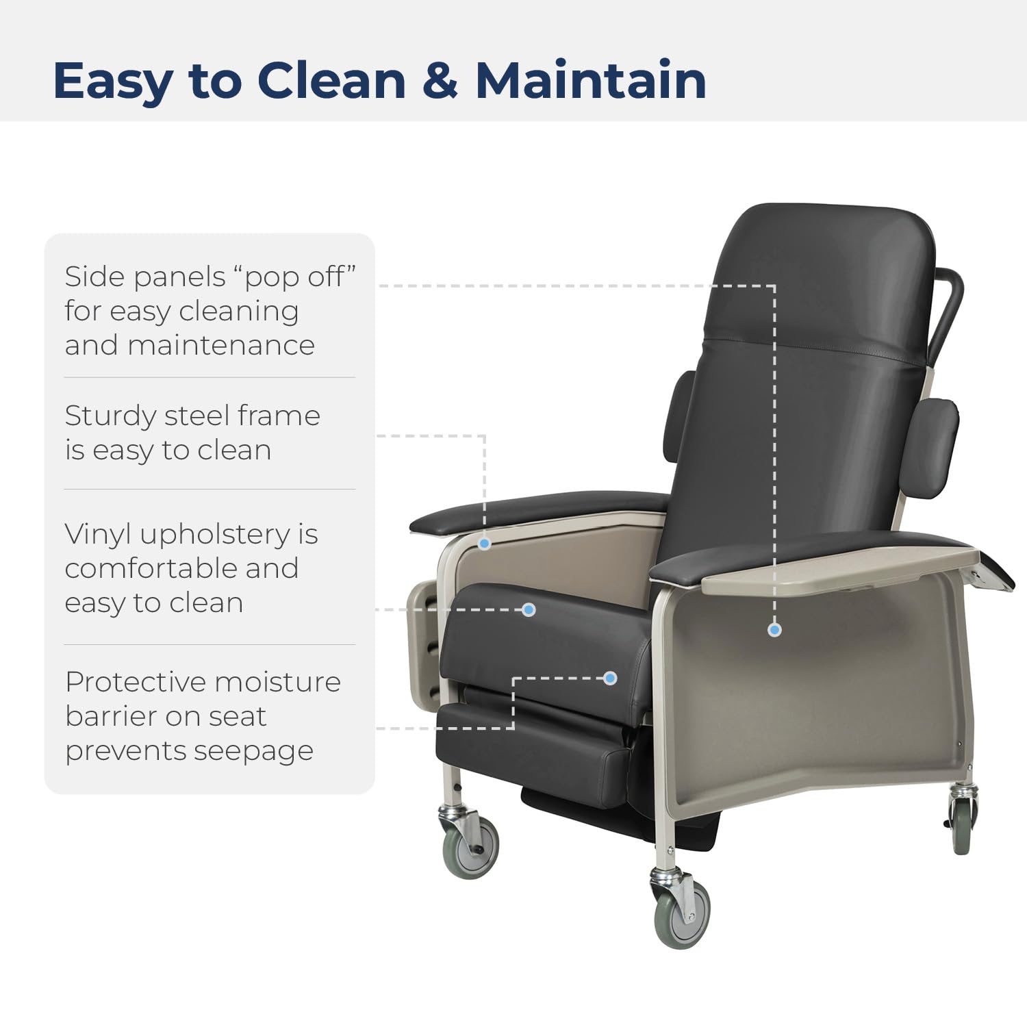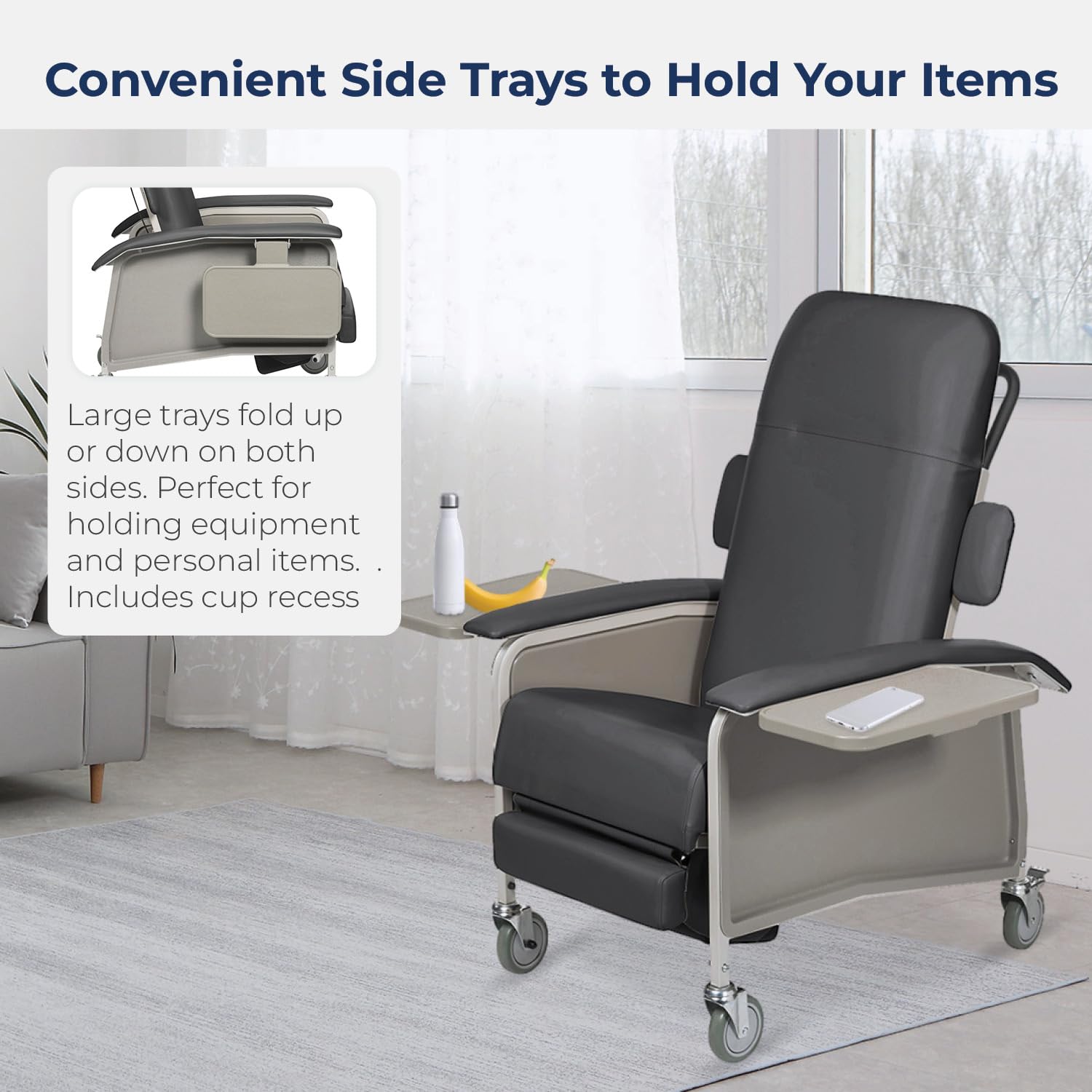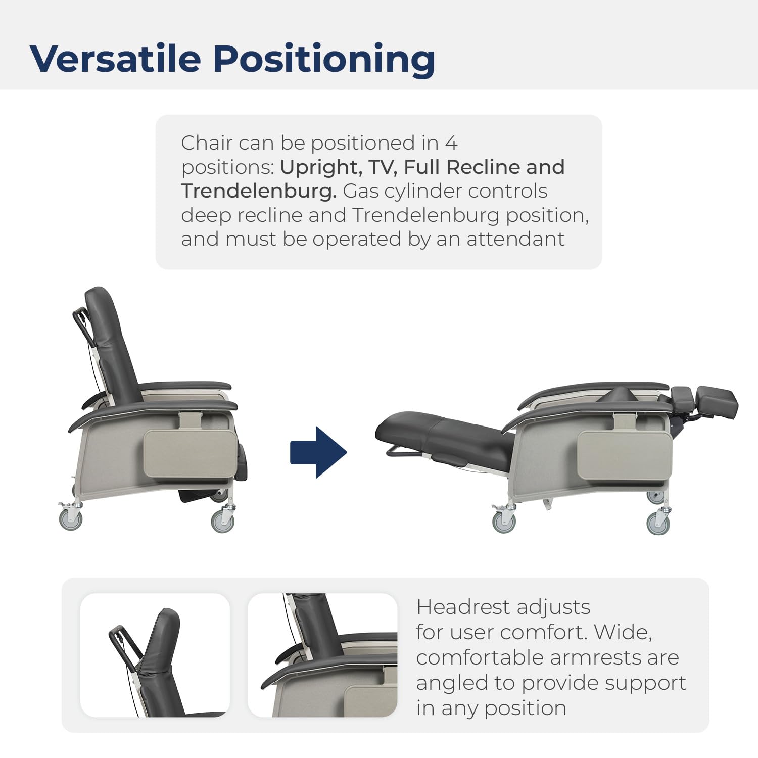 Drive Medical 4 Position Clinical Care Geri Chair Recliner, Reclining Padded Chair with Armrests, Charcoal