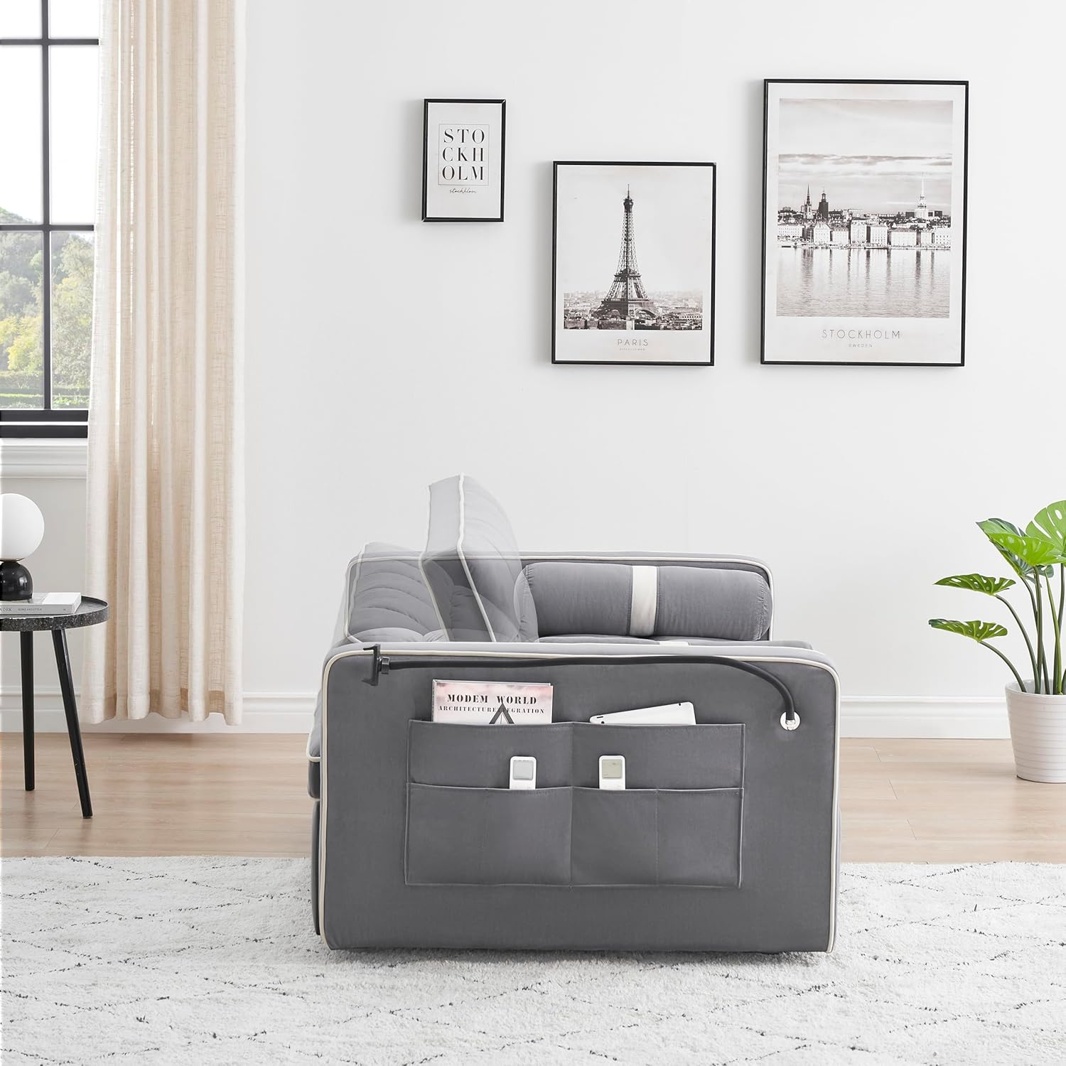 55" 3 in 1 Convertible Sleeper Sofa Bed with USB Port, Cupholder, Swivel Phone Stand & Side Pocket, Modern Velvet Loveseat Futon Couch for Living Room Apartment Office, 55 inch, Beige