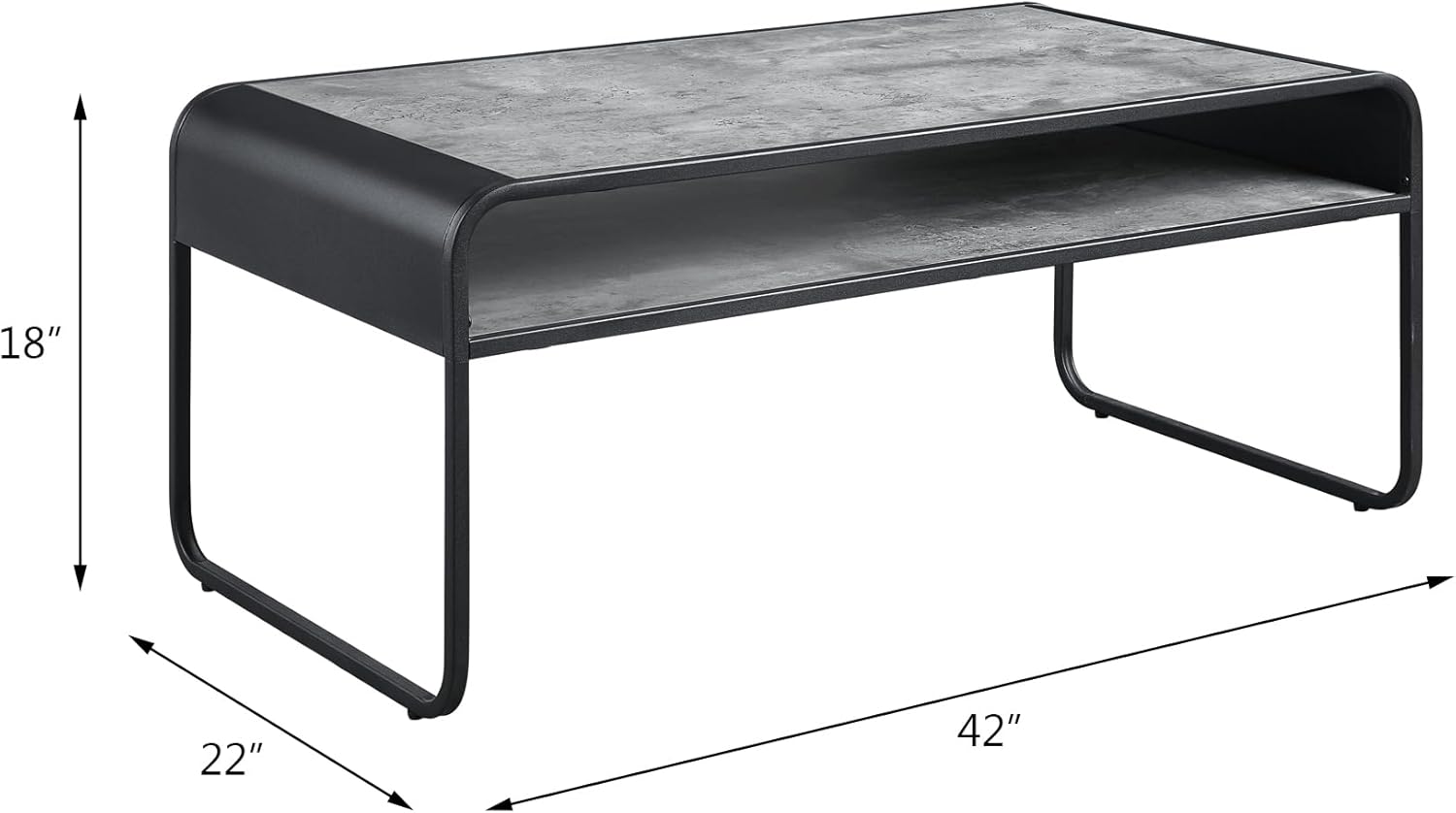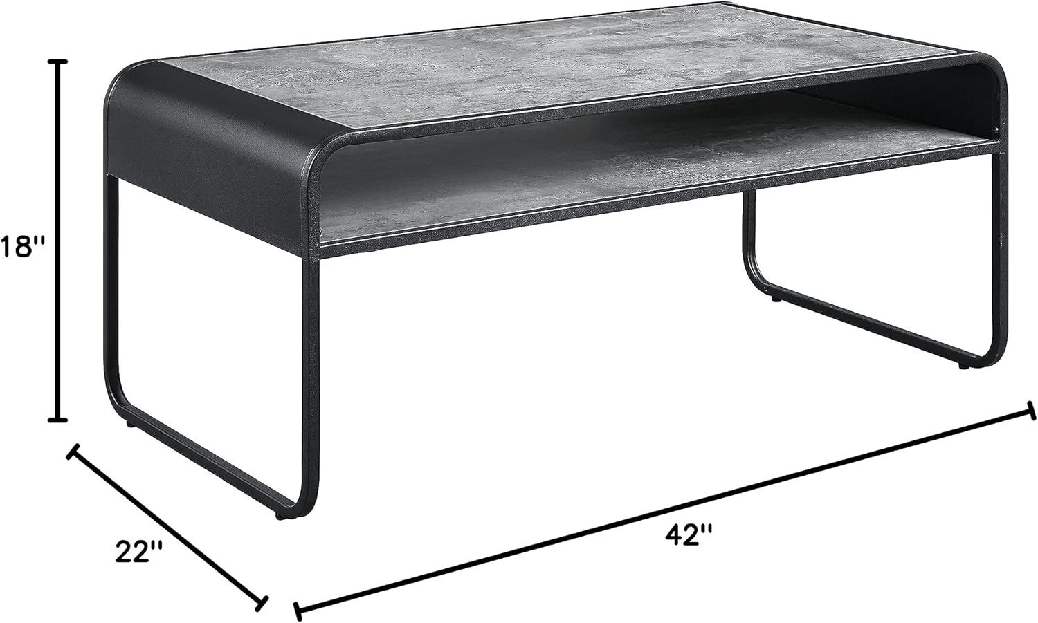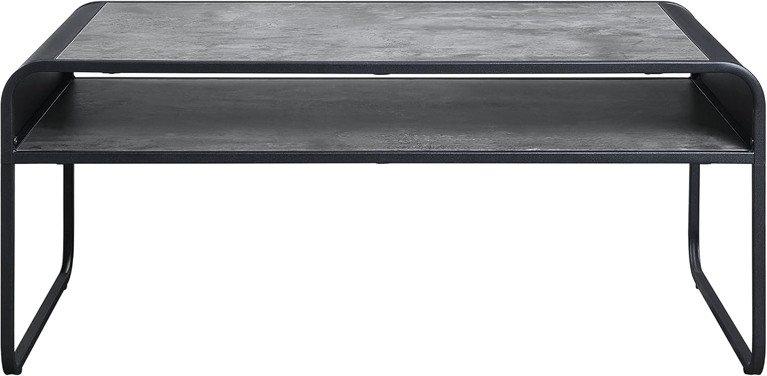 Acme Furniture Rectangular Coffee Table with Open Shelf, Concrete Gray and Black