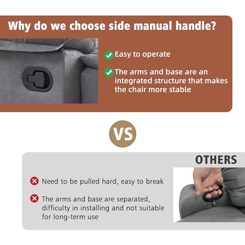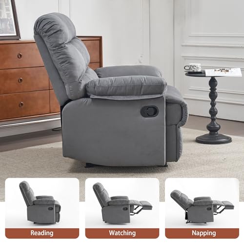 Recliner Chair for Adults, Overstuffed Large Manual Recliner, Upholstered Soft Fabric Living Room Reclining Sofa Chair(Gray)