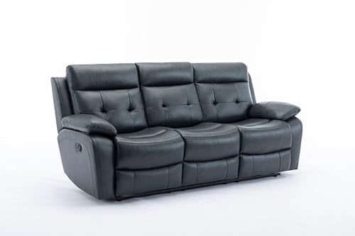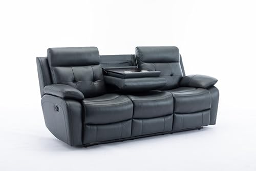 Theater and Living Room Sofa Couch for 3, Manual Reclining Sofa&Couch with LED Light Strip, 2 Cup Holders and DropDown Table for Home,Apartment,House, 82.2", Black-623