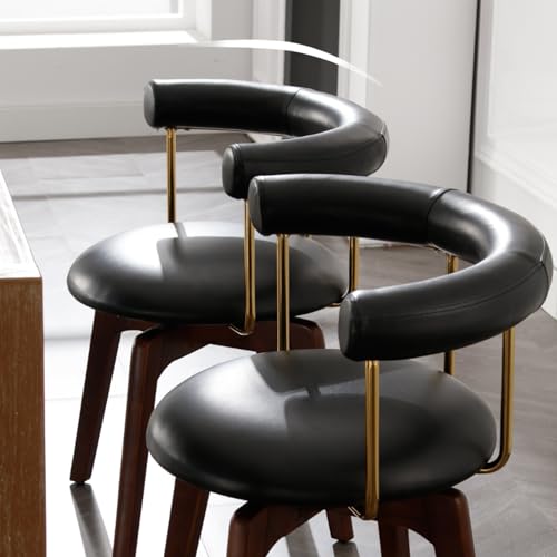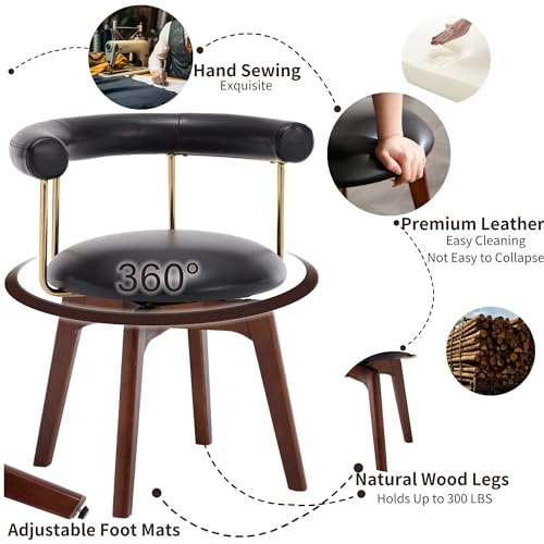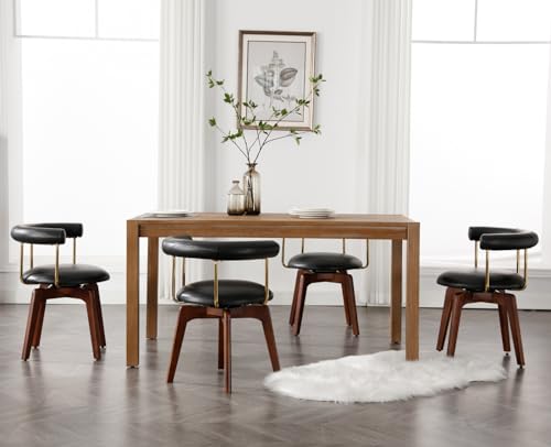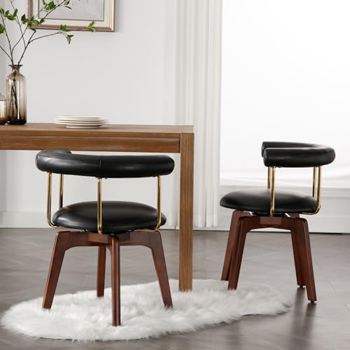 Shunzhi Swivel Dining Chairs Set of 4 Upholstered Dining Room Chairs Black Leather Kitchen Chairs Mid Century Modern Dining Chair with Barrel Back/Wood Legs/Arms for Kitchen/Dining Room/Restaurants