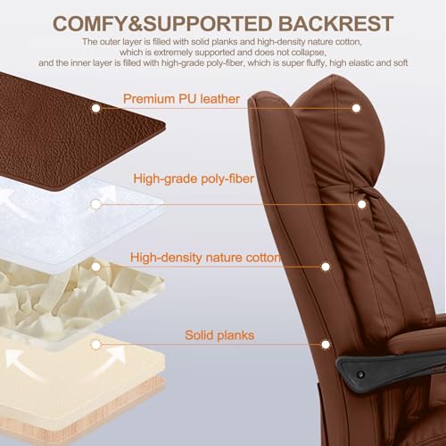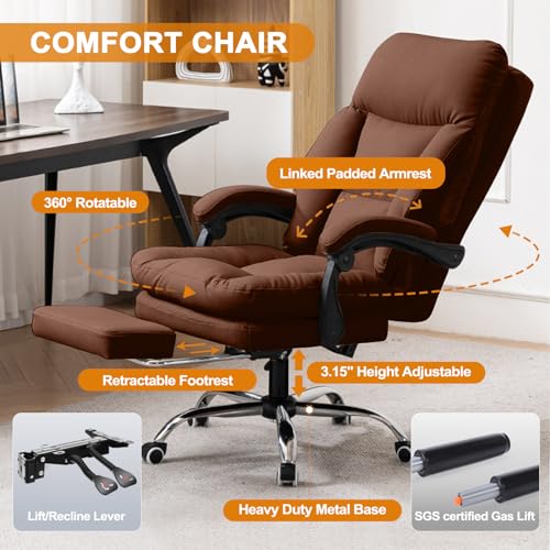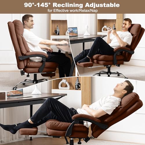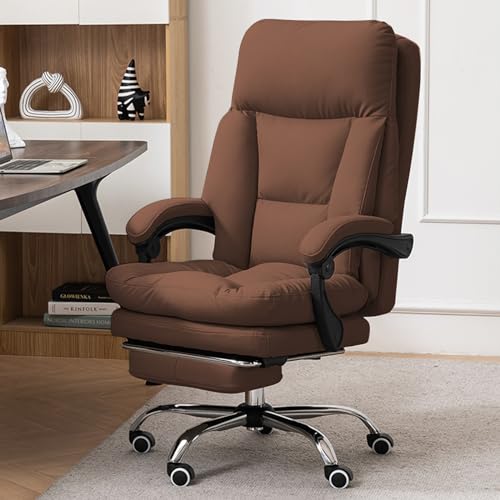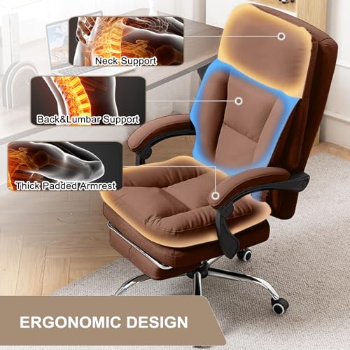 Comfortable Office Chair Ergonomic High Back Desk Chair Computer Gaming Chairs Soft PU Leather Lumbar Support Big and Tall Executive Office Chair with Footrest, Beige
