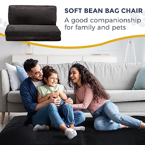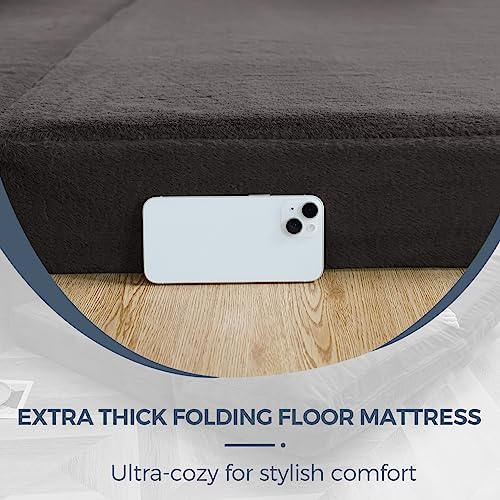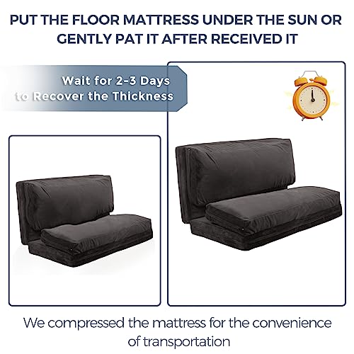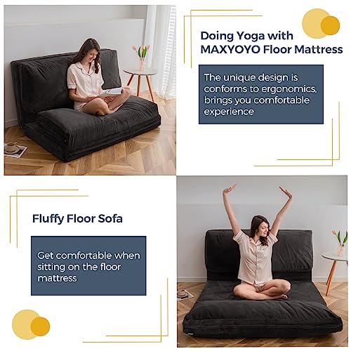 MAXYOYO Bean Bag Bed Folding Sofa Bed Floor Mattress for Adults, Extra Thick and Long Floor Sofa with Faux Fur Washable Cover, Full Floor Couch Bed for Bedroom Living Room, Cream White, 54x95 Inch
