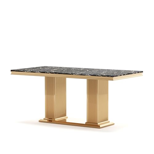 HomVent 70.08'' Faux Marble Dining Table Set for 6, Modern Rectangle Faux Marble Kitchen Table Set with Faux Marble Table Top & Stainless Steel Base (Silver Table with 6 Grey Chairs, 7 Pieces)