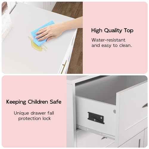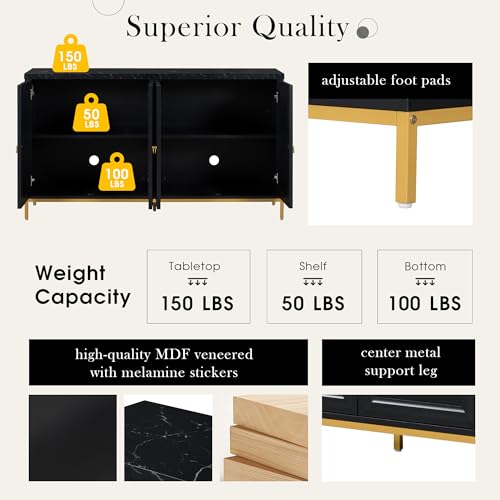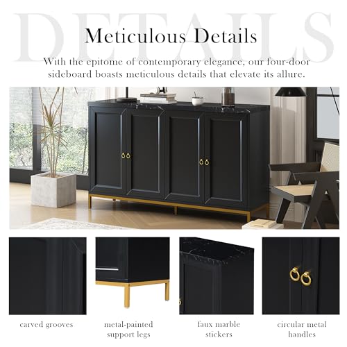 Knocbel Modern Buffet Sideboard with Extra Large Storage Space and Adjustable Shelf, Kitchen Storage Cabinet Console Table with Metal Handles and Support Legs, 15.5" D x 59.3" W x 34.2" H, Light Grey