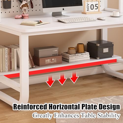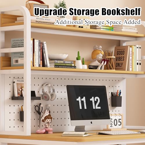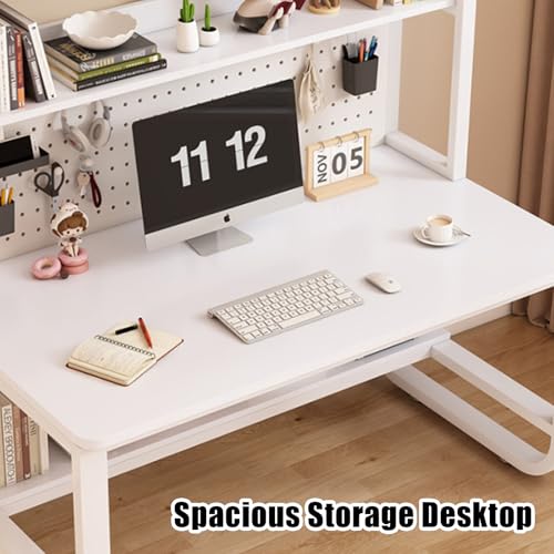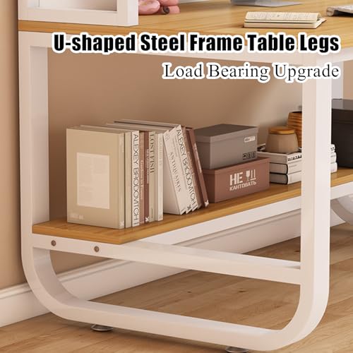 Computer Desk with Bookshelf and Hutch, Spacious Desktop Metal Legs Bookcase,Open Storage Space Writing Study Table for Home Office Desk(47.2x23.6x70in, Teak Black)