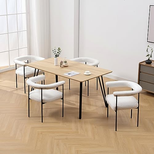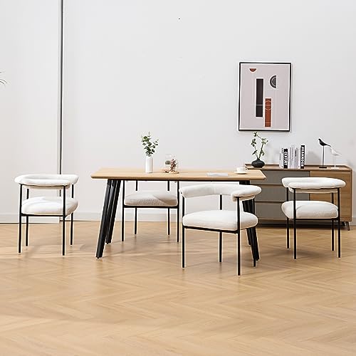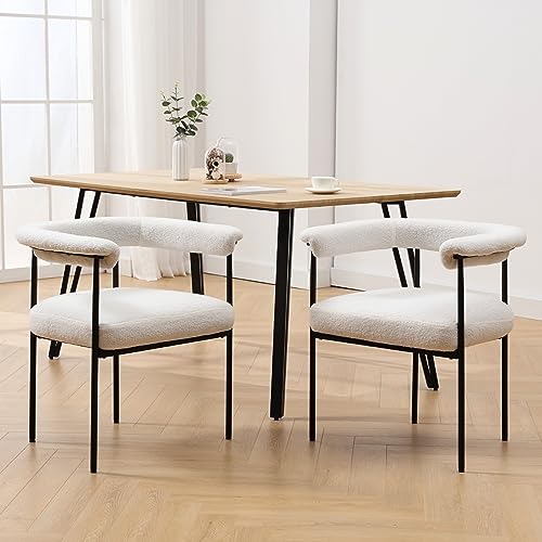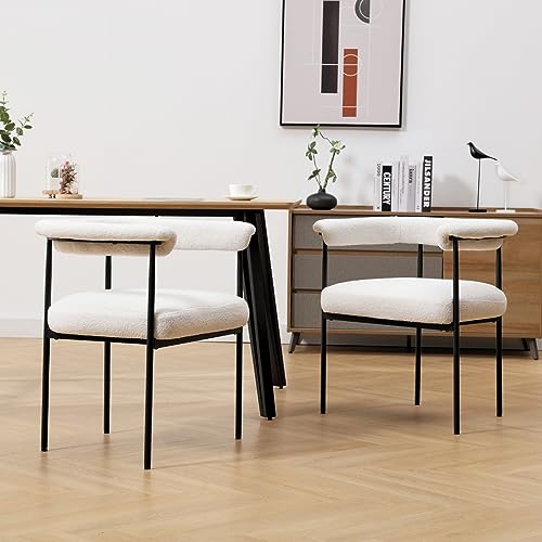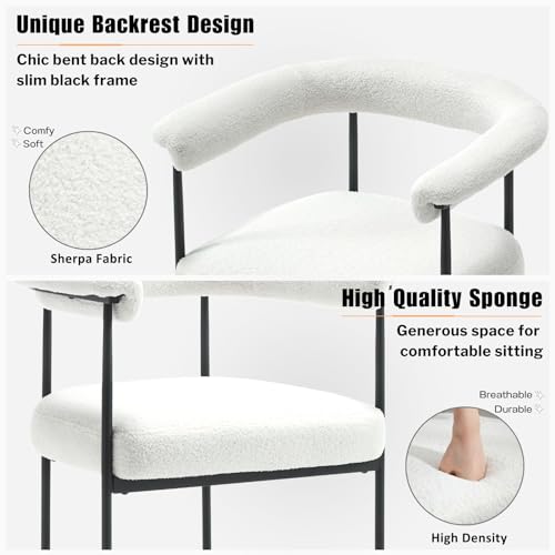 HEAH-YO Modern Dining Chairs Set of 2, Sherpa Upholstered Kitchen Chairs with Back Barrel Side Chairs with Metal Legs Boucle Accent Arm Chairs for Dining Room Living Room, White