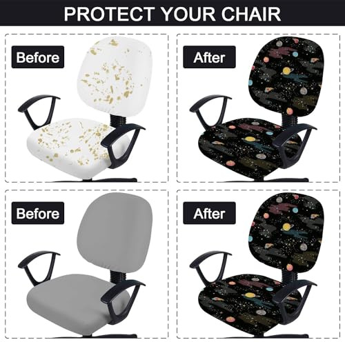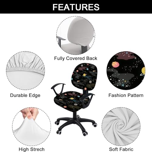 Stretch Printed Computer Office Chair Covers Funny dinosaurs a spacesuit space planets Rotating Desk Chair Slipcovers Removable Washable Chair Seat Cushion Protector Cover for Office Home