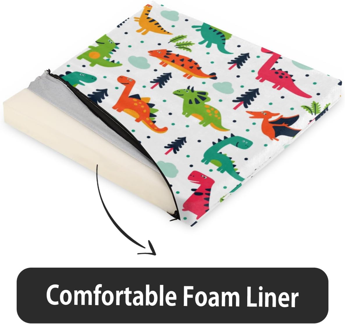Cartoon Dinosaur Chair Cushion 16x16 Inch Memory Foam Seat Cushion with Removable Cover Square Soft Chair Pads for Dining Office Room Chairs Back Seat Cover