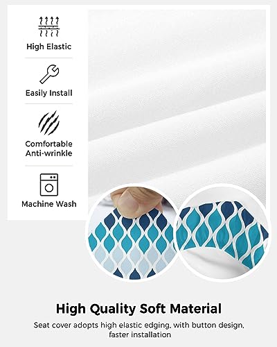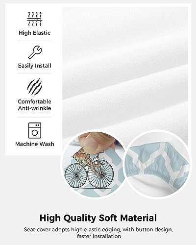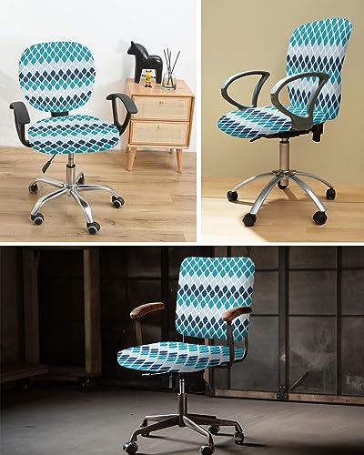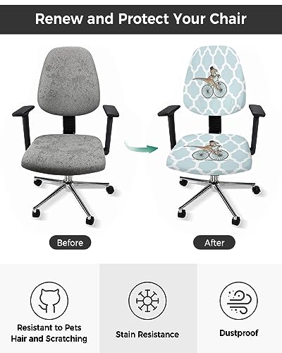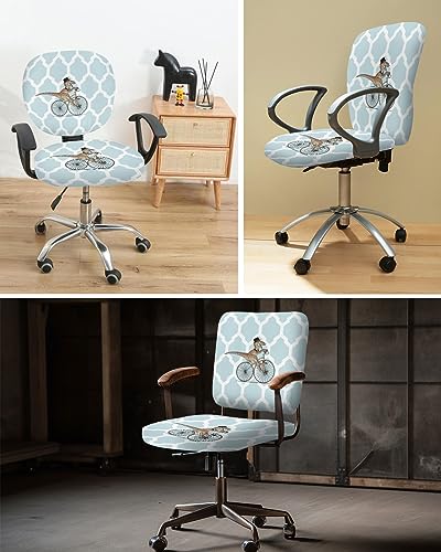 Office Chair Covers Stretchable, Cartoon Dinosaur Gentleman Riding a Bike Morocco Geometric Pattern Blue Elastic Removable Rotating Desk Chair Slipcovers Computer Chair Seat & Back Cover Set