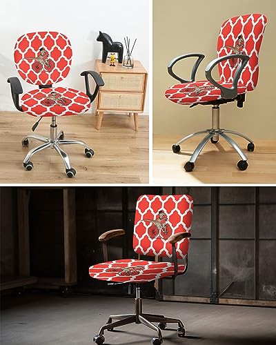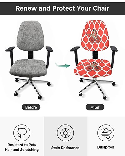 Office Chair Covers Stretchable Dinosaur with Moroccan Texture Grey Split Computer Desk Chair Cover Universal Spandex Chair Seat Covers Rotating Boss Arm Chair Slipcovers