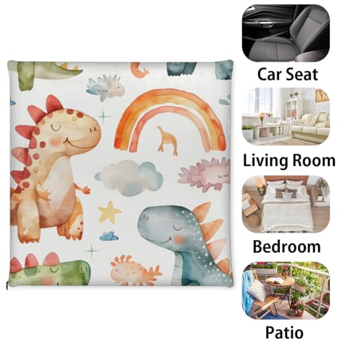 Square Floor Cushions Chair Pad Flexible Seating Pink Cute Dinosaurs for in-Home Distance Learning, Office, Garden, Car