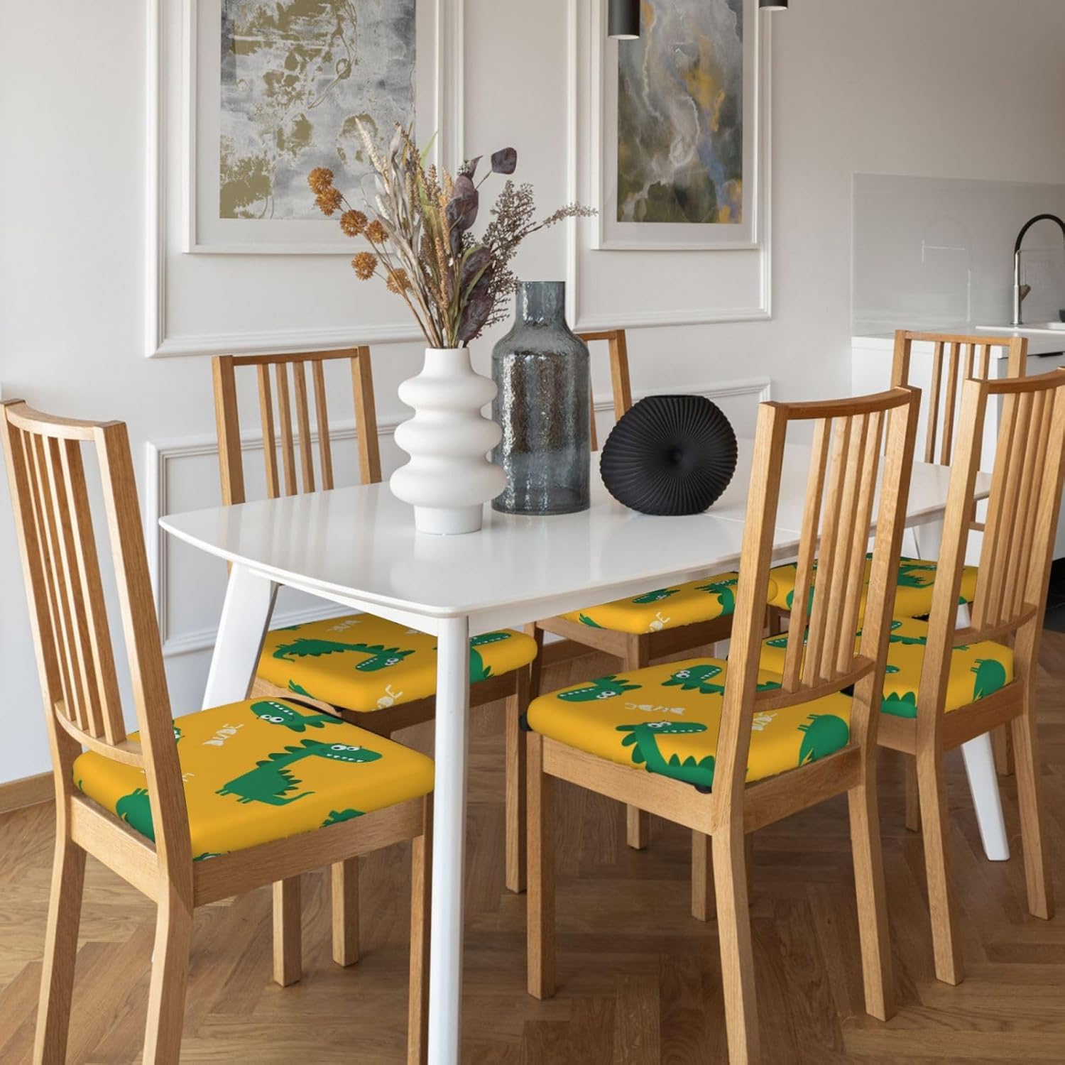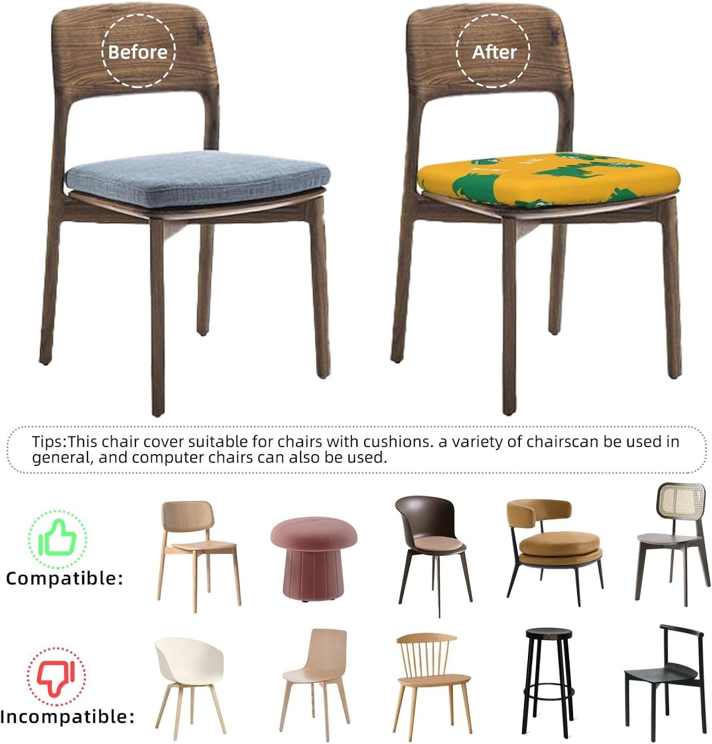 Dining Chair Covers Set of 4, Dining Room Chair Seat Covers Washable Kitchen Chairs Slipcovers for Living Room, Home, Office -(Dinosaur)