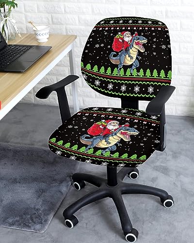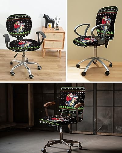 Stretch Office Chair Covers - Removable Desk Chair Cover for Office - Funny Santa Claus and Dinosaur Snowflakes Black Universal Computer Chair Cover Chair Protector