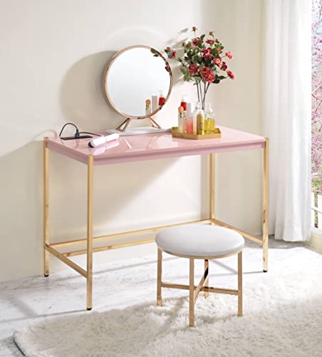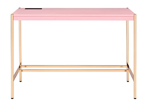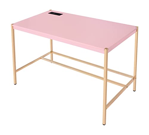 Acme Midriaks Wooden Top Writing Desk with USB Port in Pink and Gold