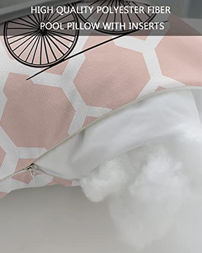 Outdoor Lumbar Pillow for Chaise Lounge Chair Dinosaur Ride Bike Head Resting Pillow Cartoon Green Moroccan Decorative Pillow with Adjustable Strap for Patio Recliner Office Sofa 2 Pack 12x20 inch