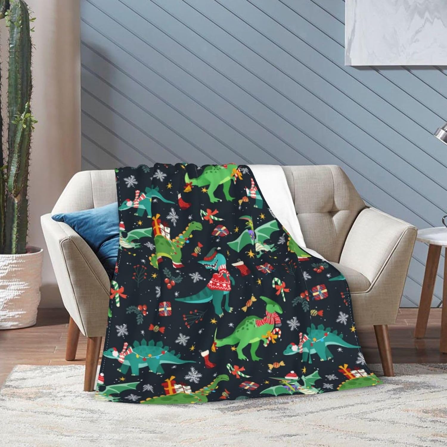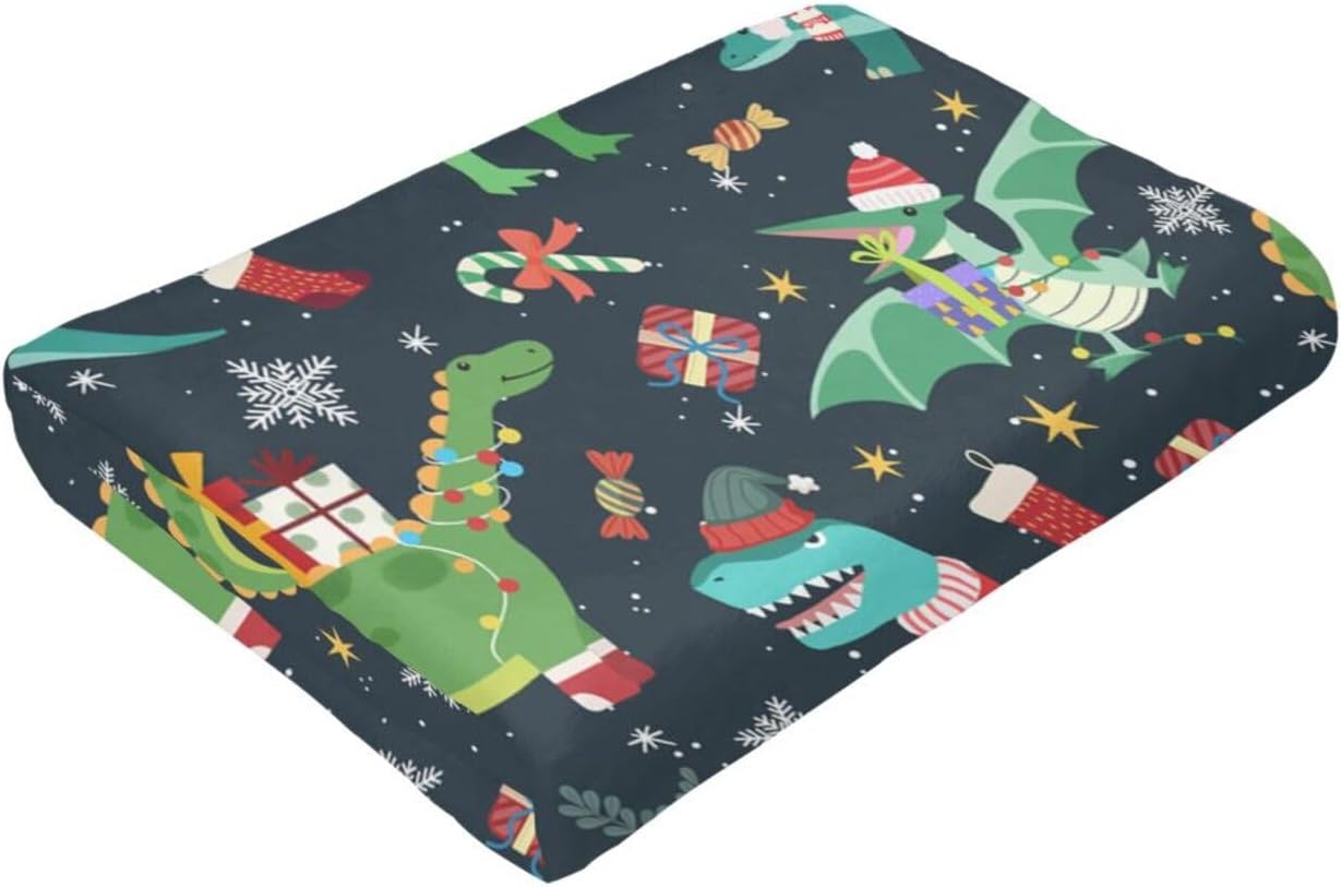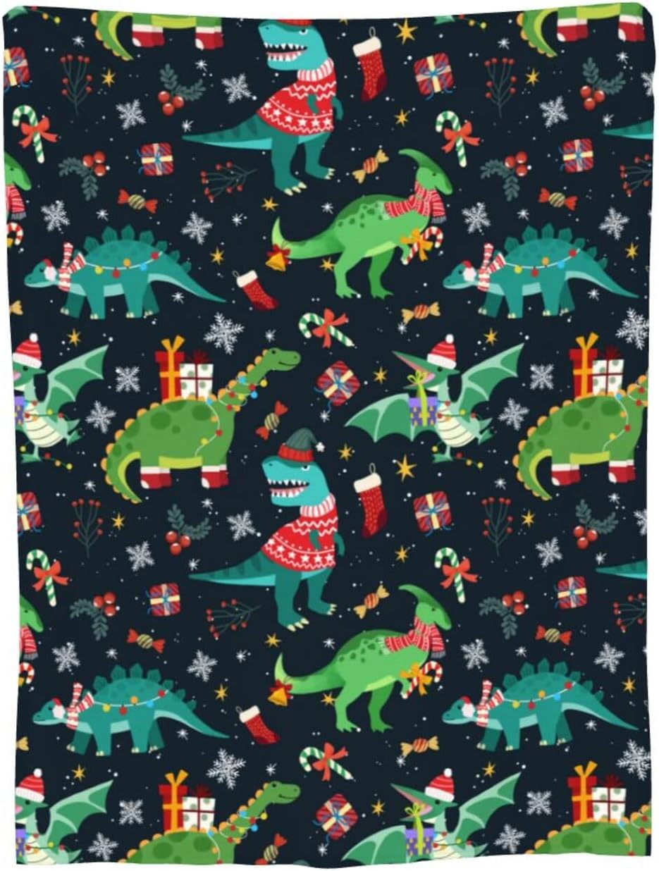 Christmas Dinosaur Blanket 40"X30" Flannel Ultra-Soft Fleece Throw Blanket for Soft,Couch,Chair,Sofa,Office Bed Suitable All Season