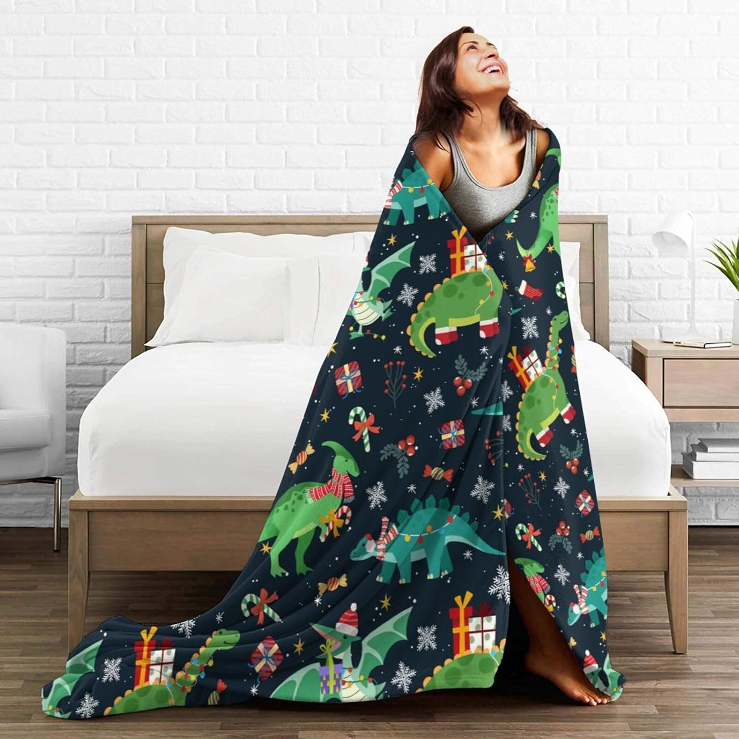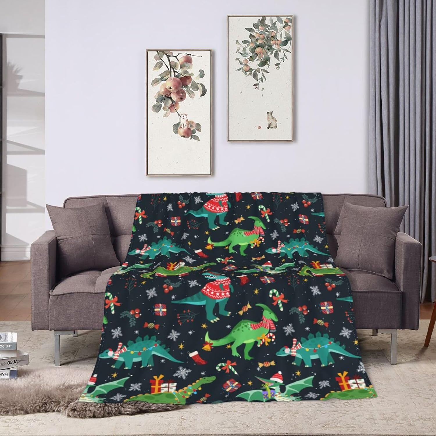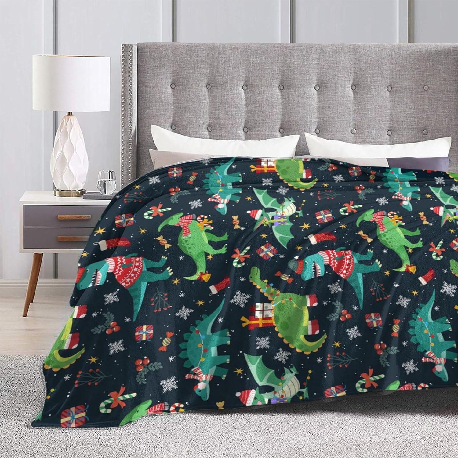 Christmas Dinosaur Blanket 40"X30" Flannel Ultra-Soft Fleece Throw Blanket for Soft,Couch,Chair,Sofa,Office Bed Suitable All Season