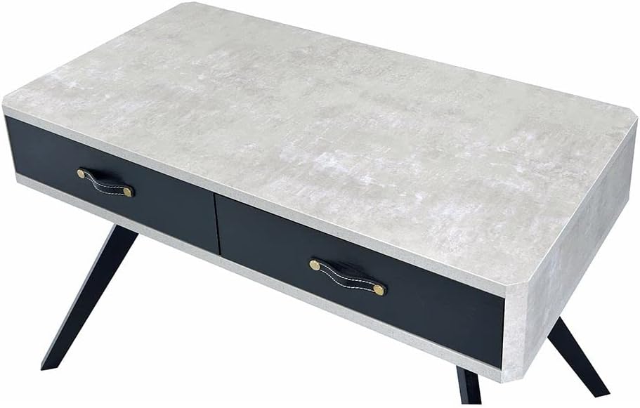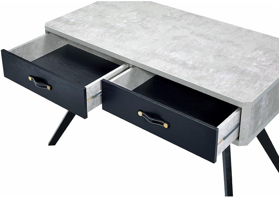 Acme Magna Wooden Writing Desk with 2 Drawers in Faux Concrete and Black