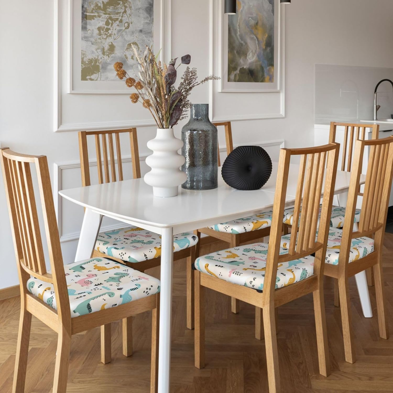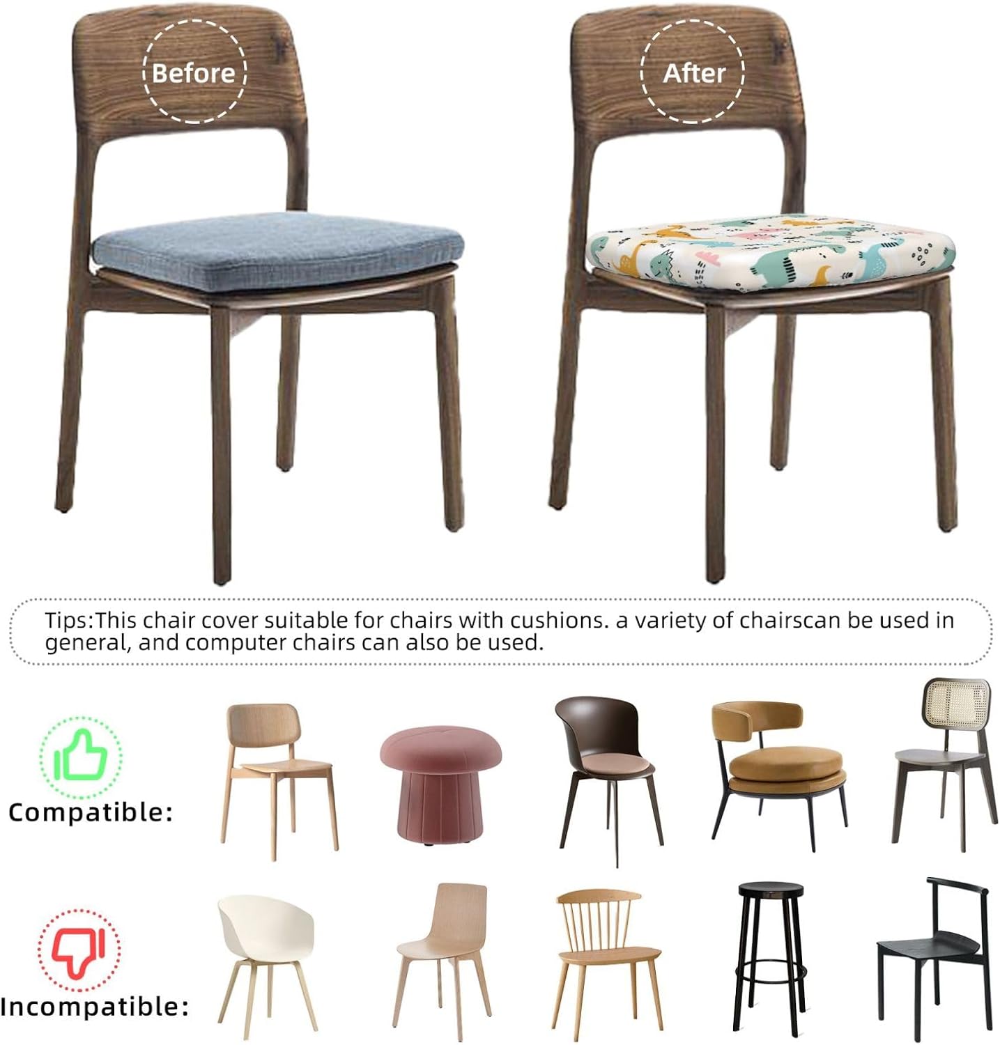 Chair Seat Covers 6pcs for Dining Room Cute Dinosaur Pattern Funny Chair Slipcovers for Office Kitchen Party Bar 16.9"