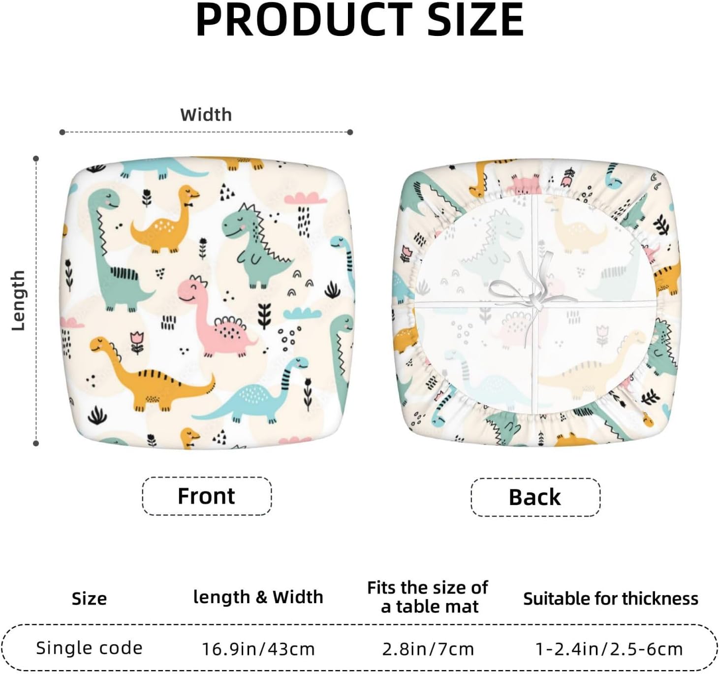 Cute Dinosaur Pattern Seat Cushion Memory Foam Kitchen Chair Cushions 14.5 Inch Outdoor Indoor Round Chair Pads for Dining Chairs, Office Chair, Car, Floor, Patio