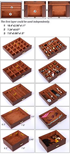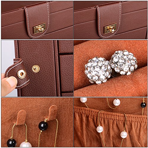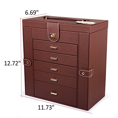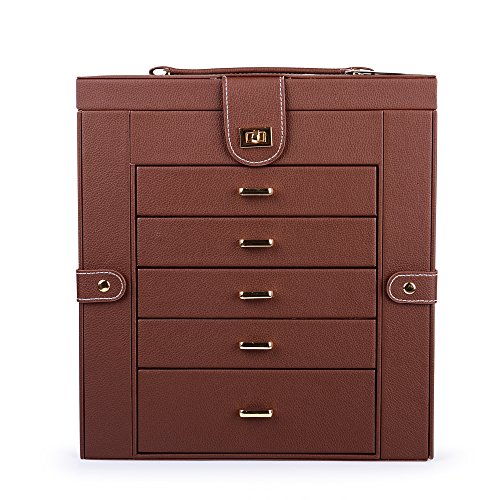 Kendal Extra Large Jewelry Box Jewelry Case PU Leather 6 Tier 5 Drawers Large Storage Capacity with Mirror Jewelry Storage Organizer Great Gift Also Good For Watches LJC-SHD5BN (Brown)