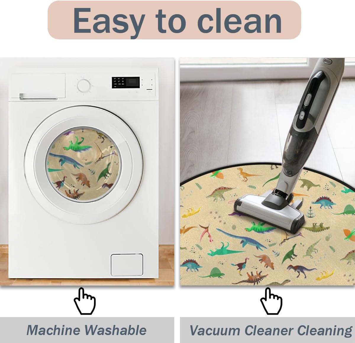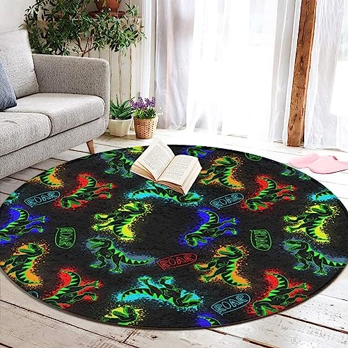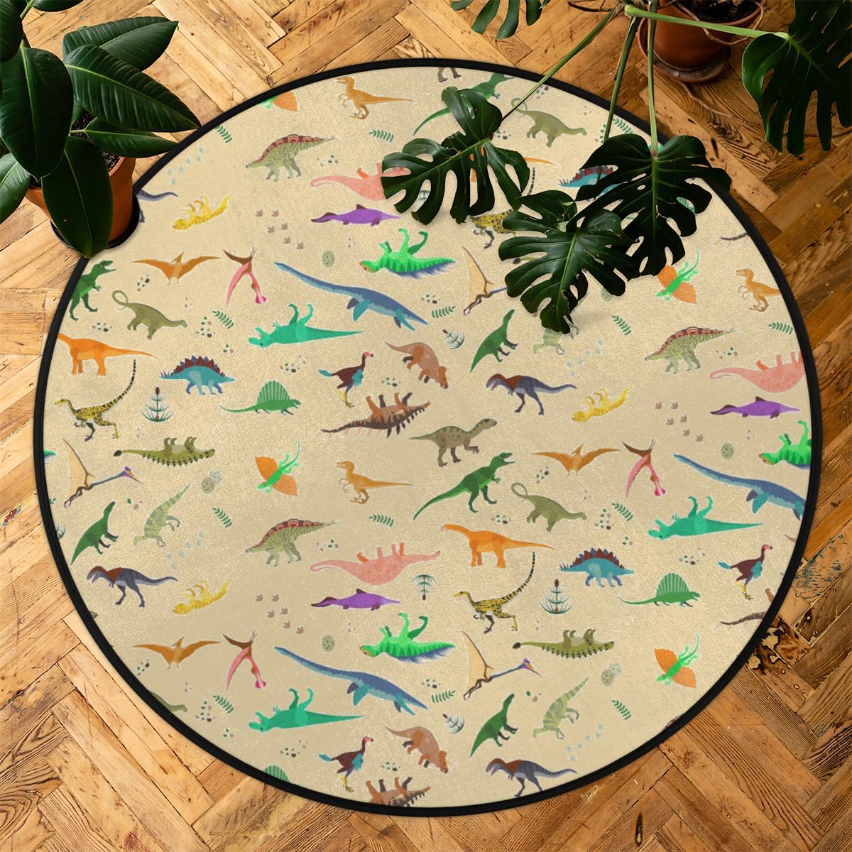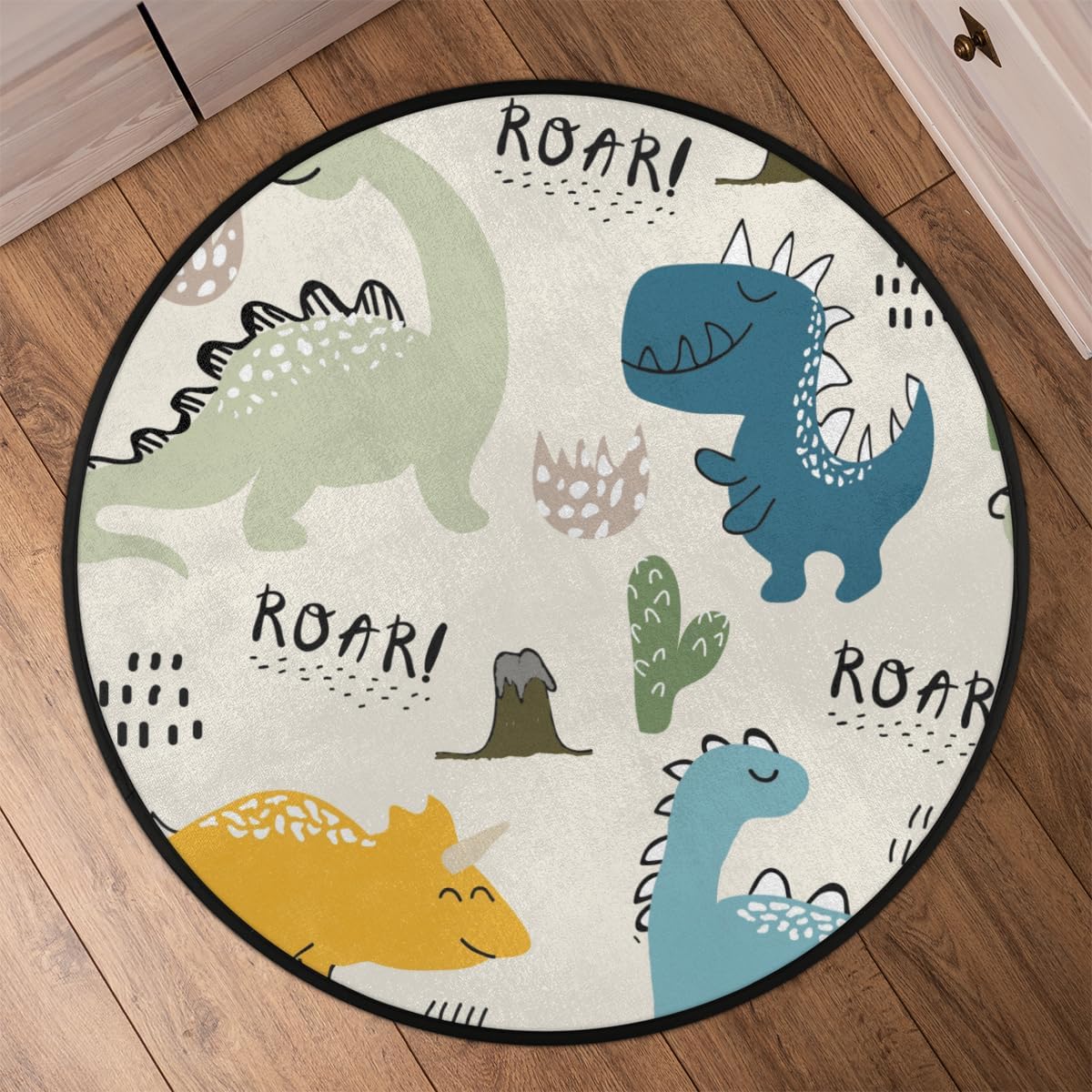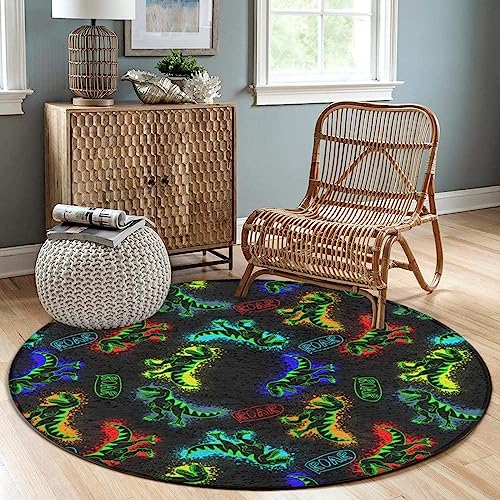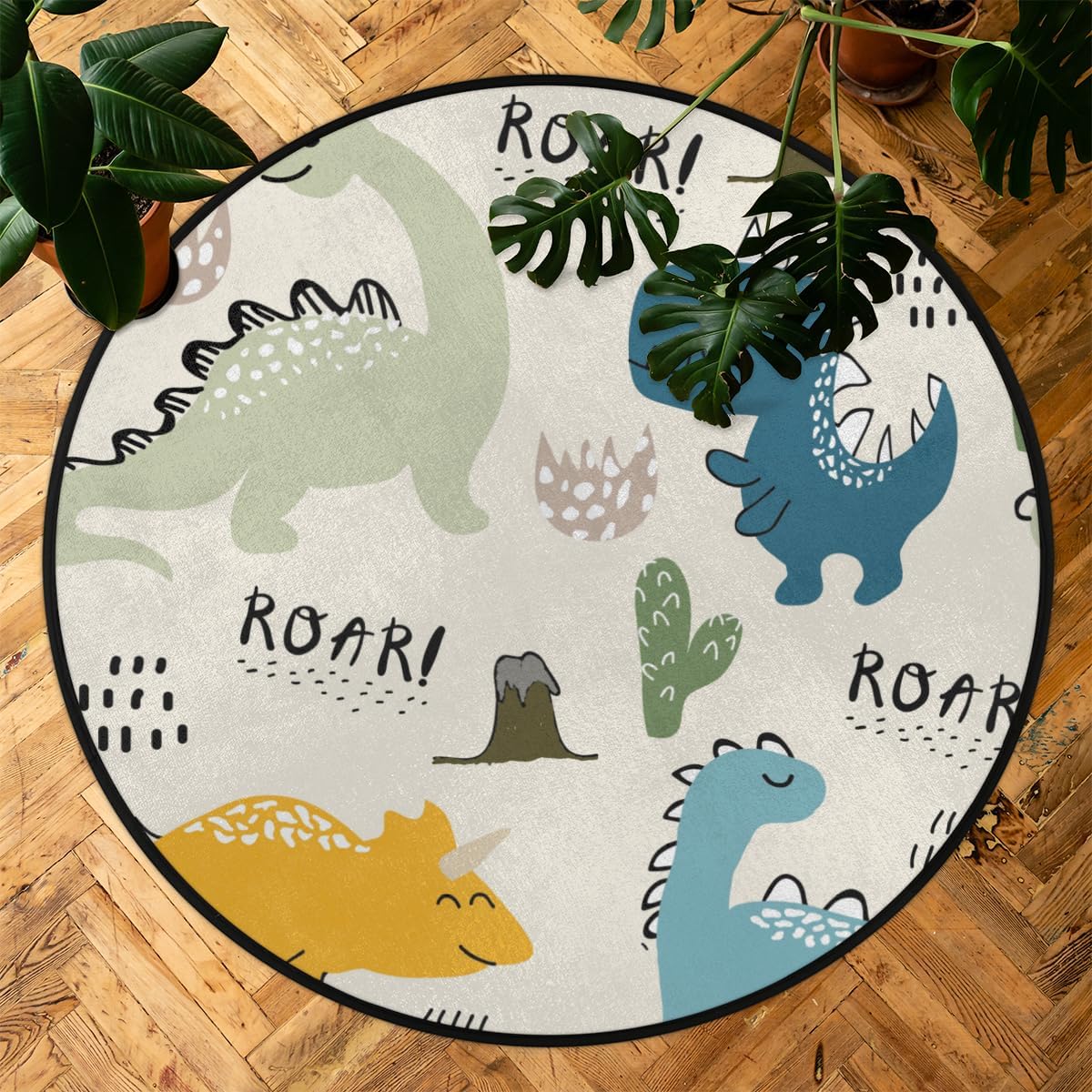 3 Ft Dinosaur Round Desk Chair Mat Non-Slip Soft Desk Floor Mat Washable Floor Mat for Office Living Room Bedrooms Laundry Room Foyer Doorway