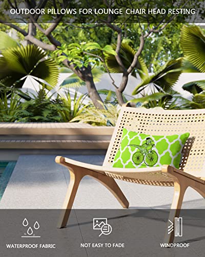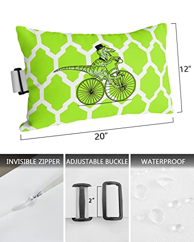 Outdoor Lumbar Pillow for Chaise Lounge Chair Dinosaur Ride Bike Head Resting Pillow Moroccan Jade Green Decorative Pillow with Adjustable Strap for Patio Recliner Office Sofa 2 Pack 12x20 inch
