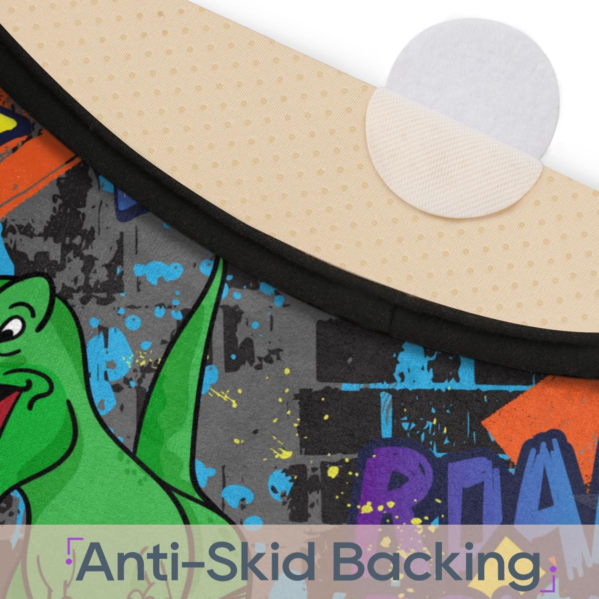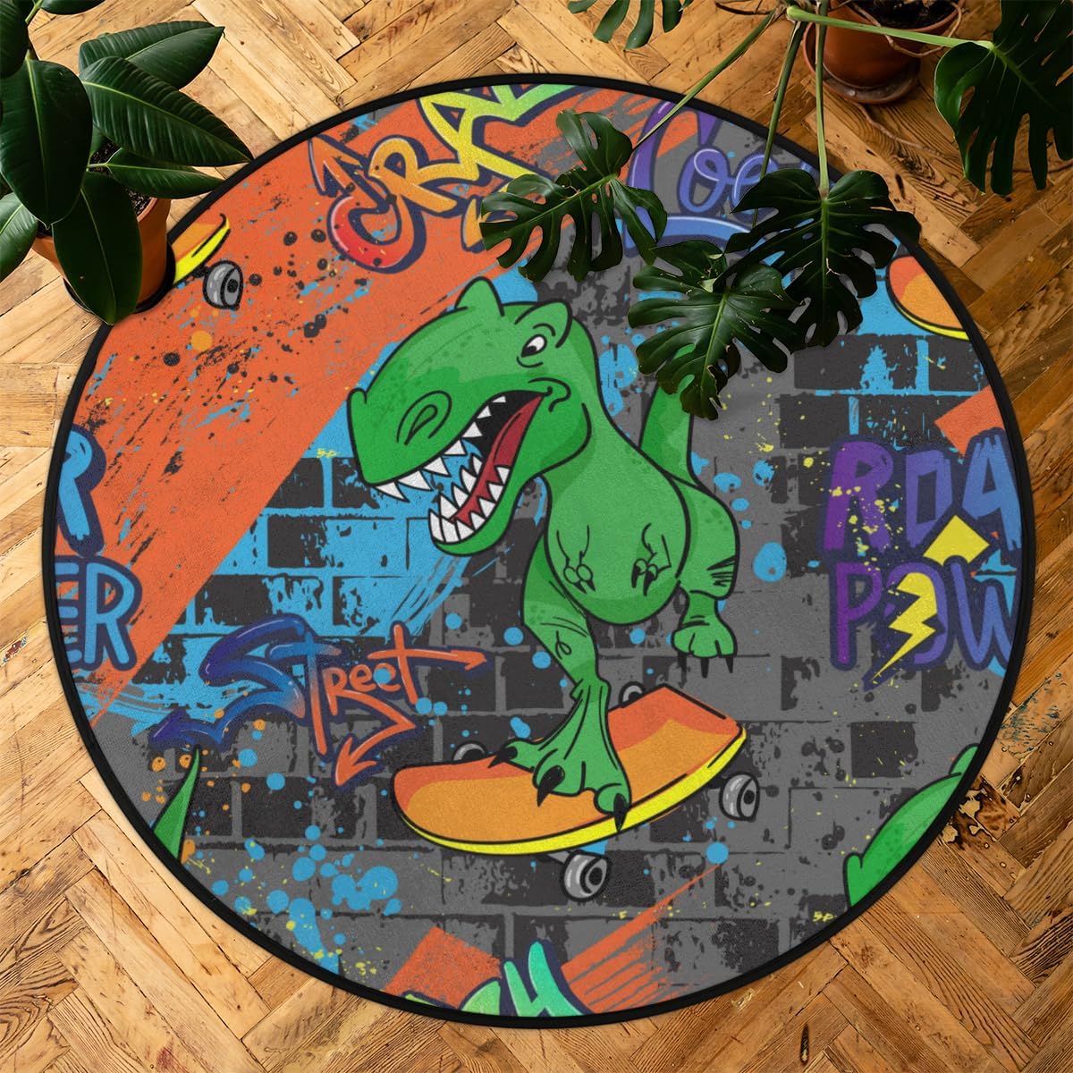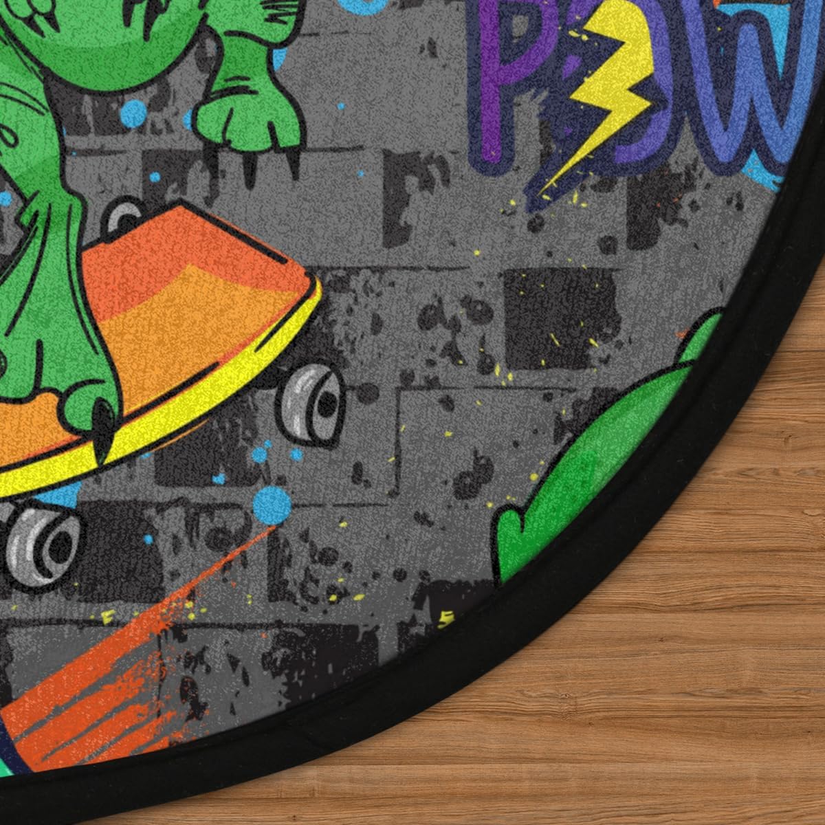 3 Ft Dinosaur Skateboard Round Desk Chair Mat Non-Slip Soft Desk Floor Mat Washable Floor Mat for Office Living Room Bedrooms Laundry Room Foyer Doorway
