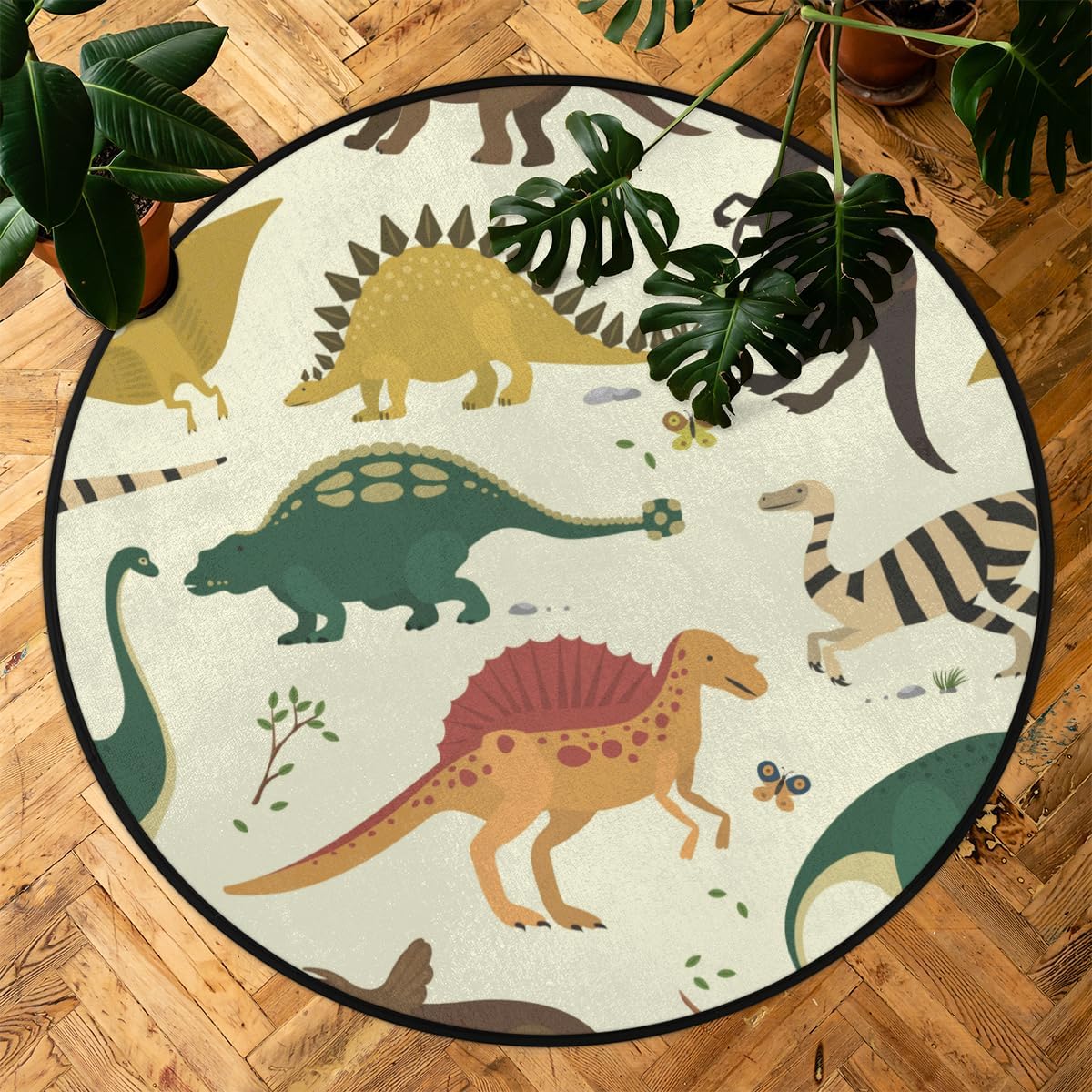 3 Ft Cute Dinosaur Round Desk Chair Mat Non-Slip Soft Desk Floor Mat Washable Floor Mat for Office Living Room Bedrooms Laundry Room Foyer Doorway