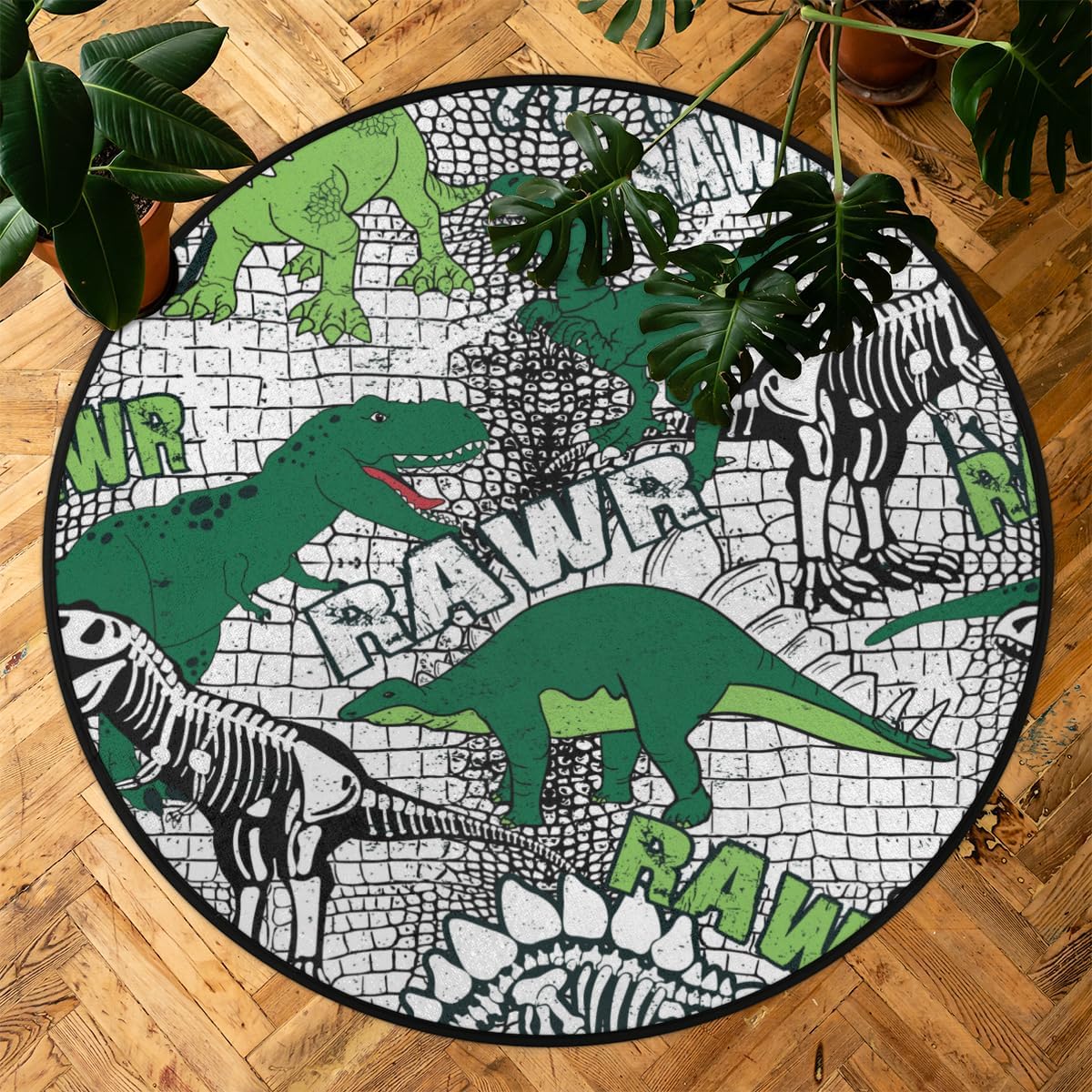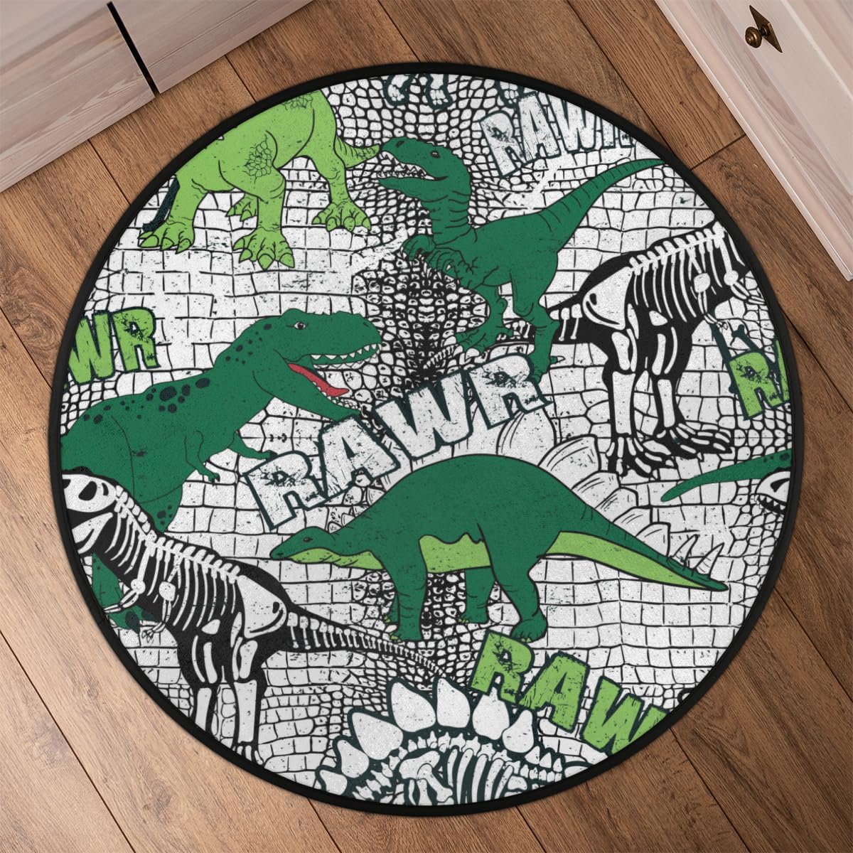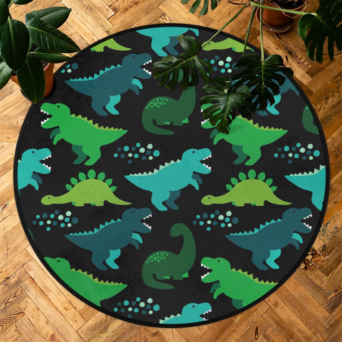 3 Ft Dinosaur Pattern Round Desk Chair Mat Non-Slip Soft Desk Floor Mat Washable Floor Mat for Office Living Room Bedrooms Laundry Room Foyer Doorway