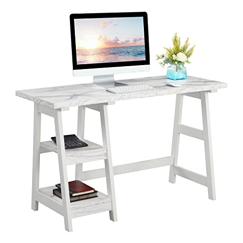 Convenience Concepts Designs2Go Trestle Desk with Shelves, 47", Sandstone