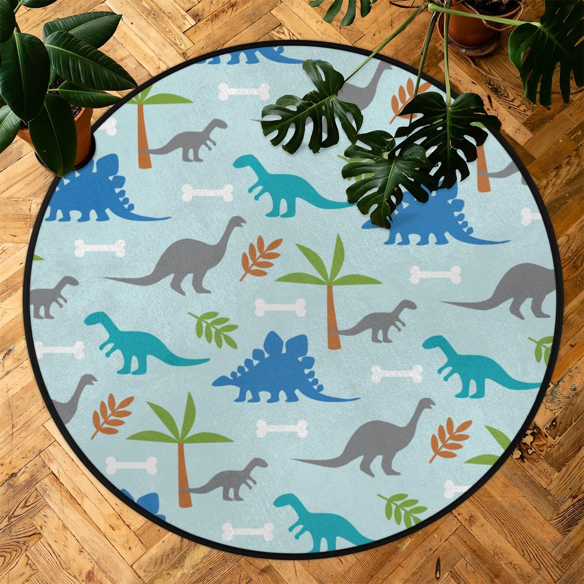 3 Ft Dinosaurs Coconut Palm Round Desk Chair Mat Non-Slip Soft Desk Floor Mat Washable Floor Mat for Office Living Room Bedrooms Laundry Room Foyer Doorway