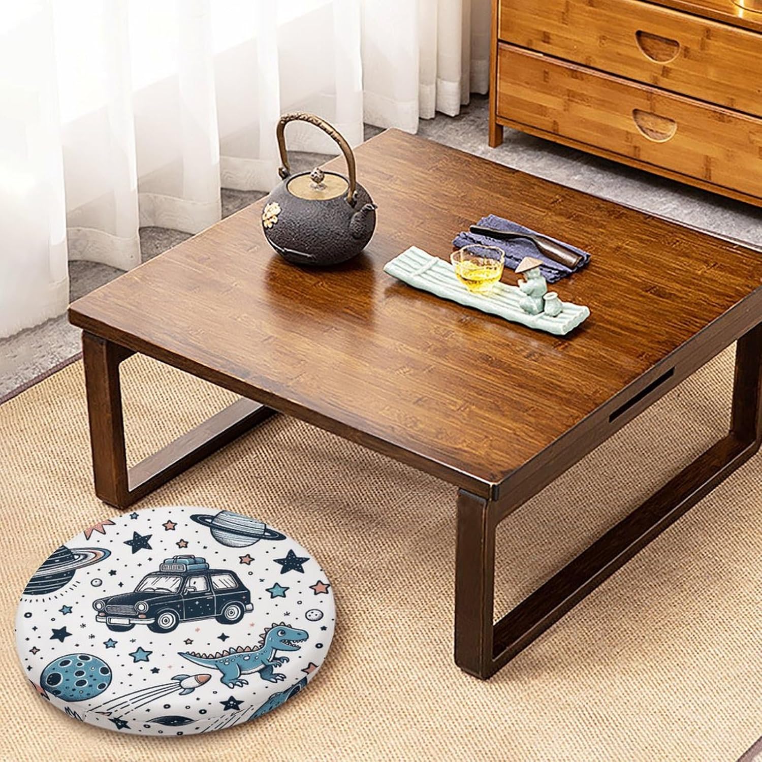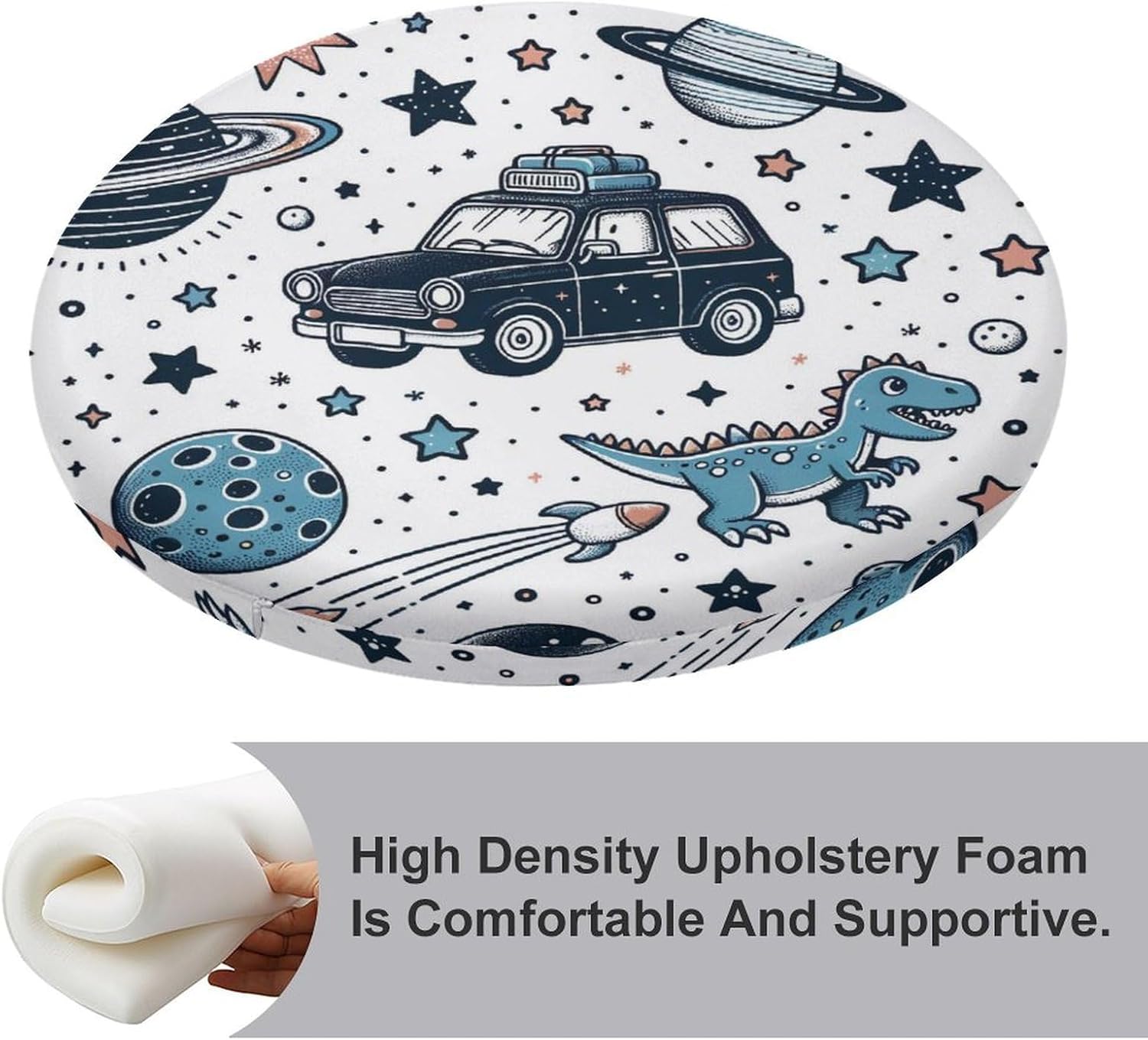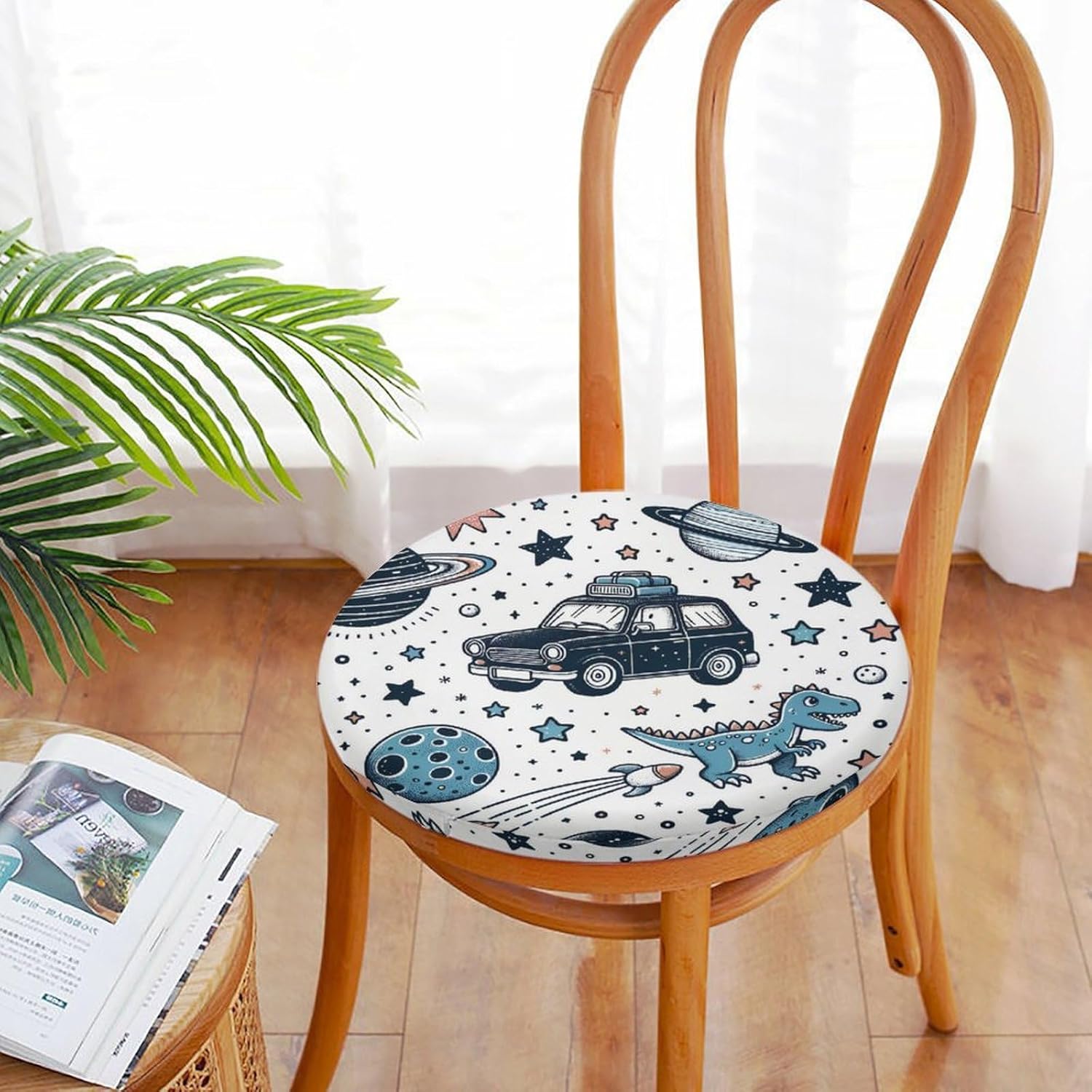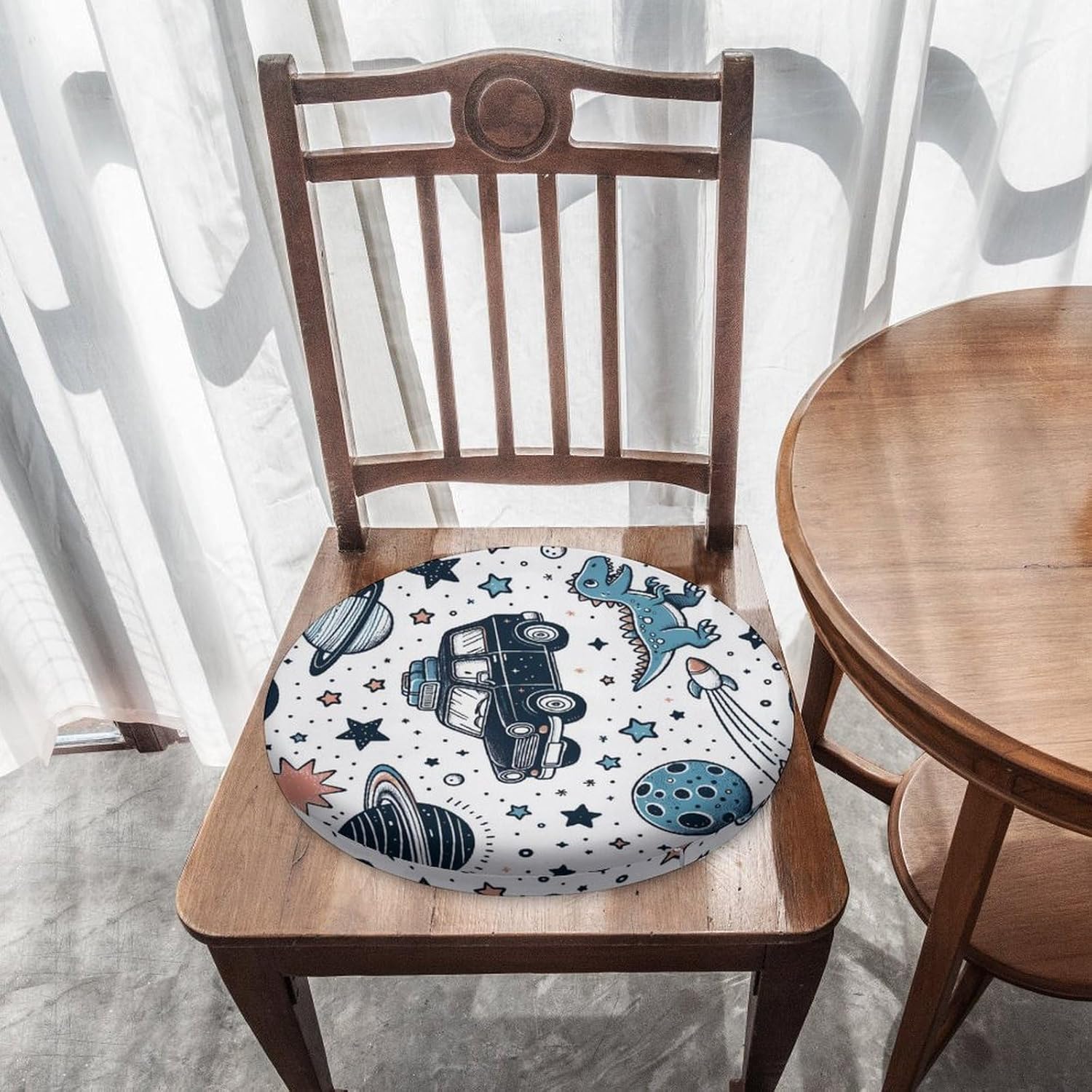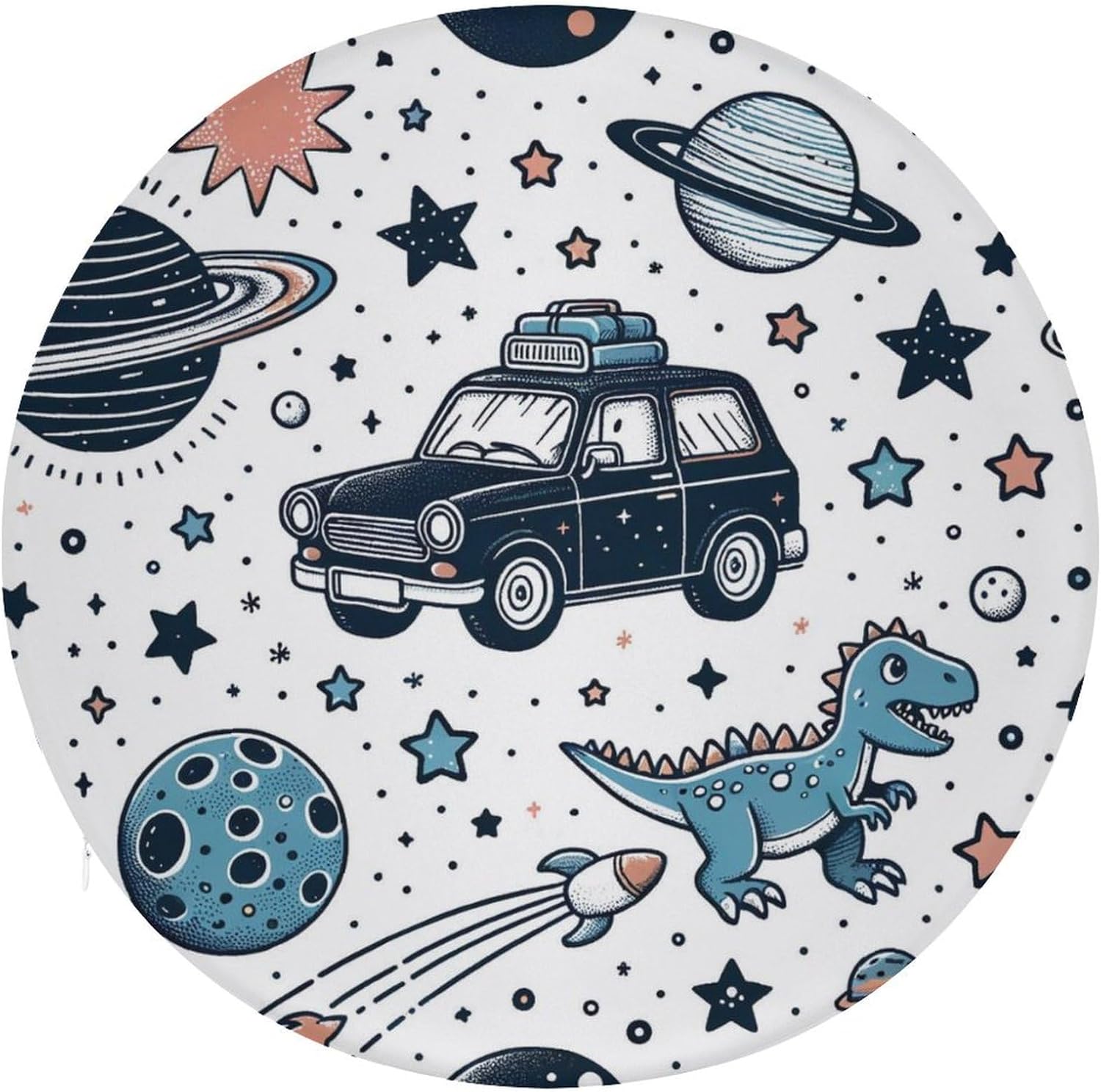 Round Seat Cushion Dinosaurs Car Space Traveling Soft Memory Foam Chair Pads Non Slip Removable Washable Zipper Chair Cushions for Office Kitchen Dining Room Tatami 15.35in