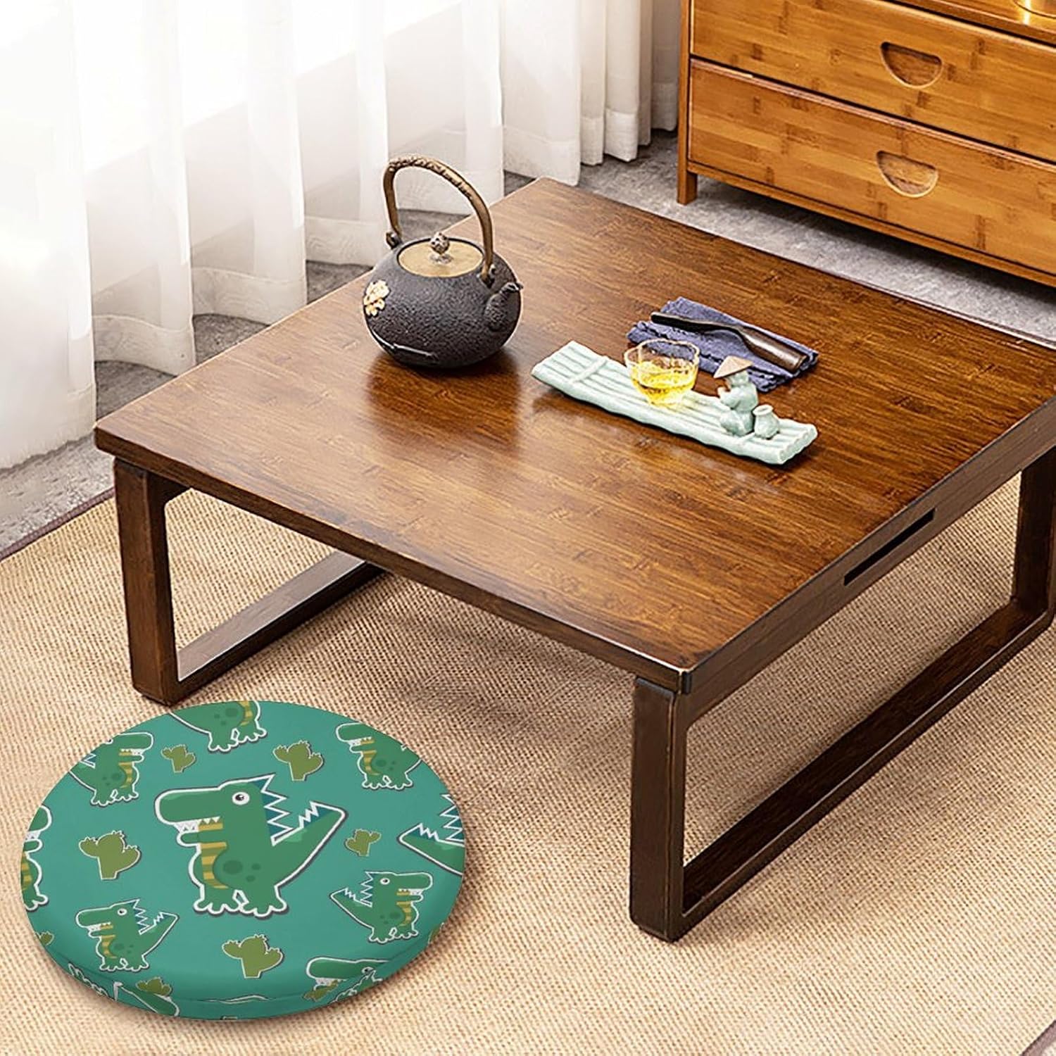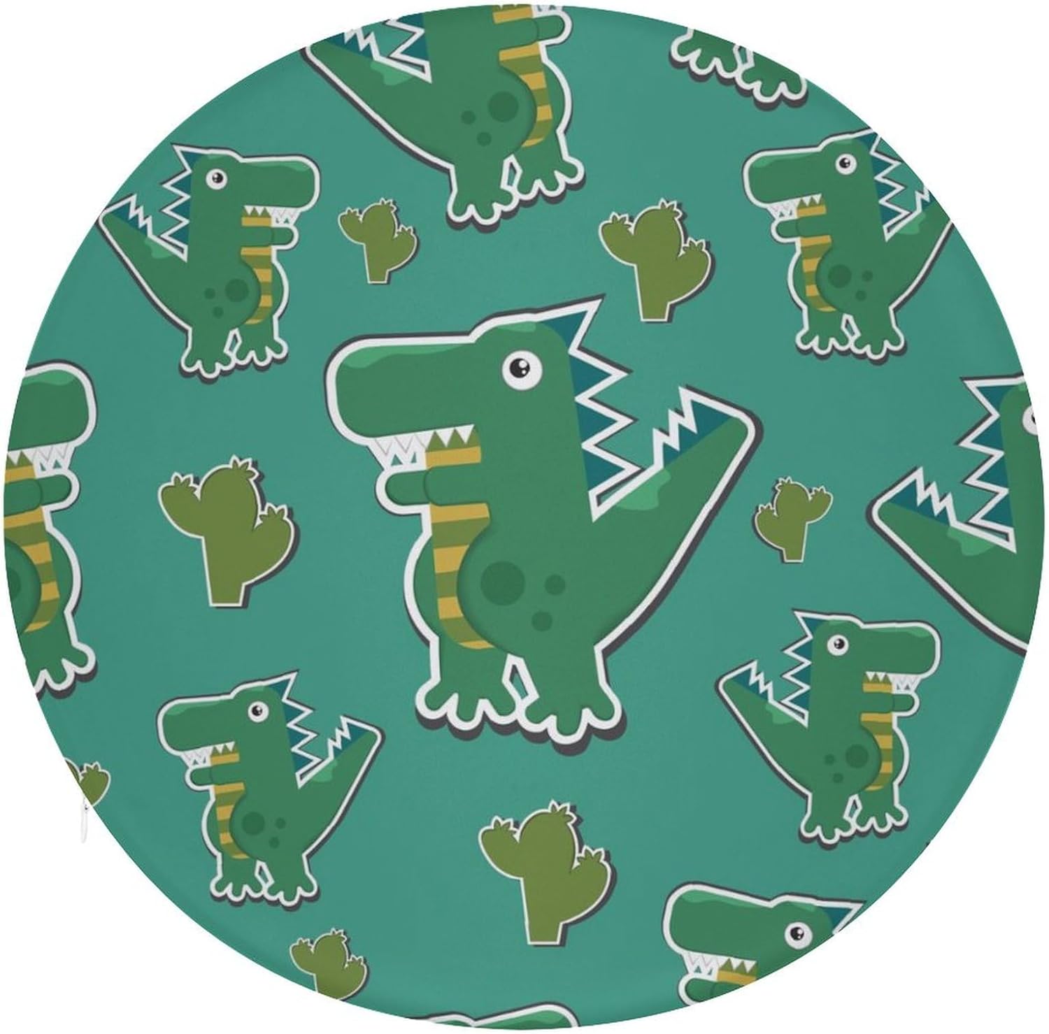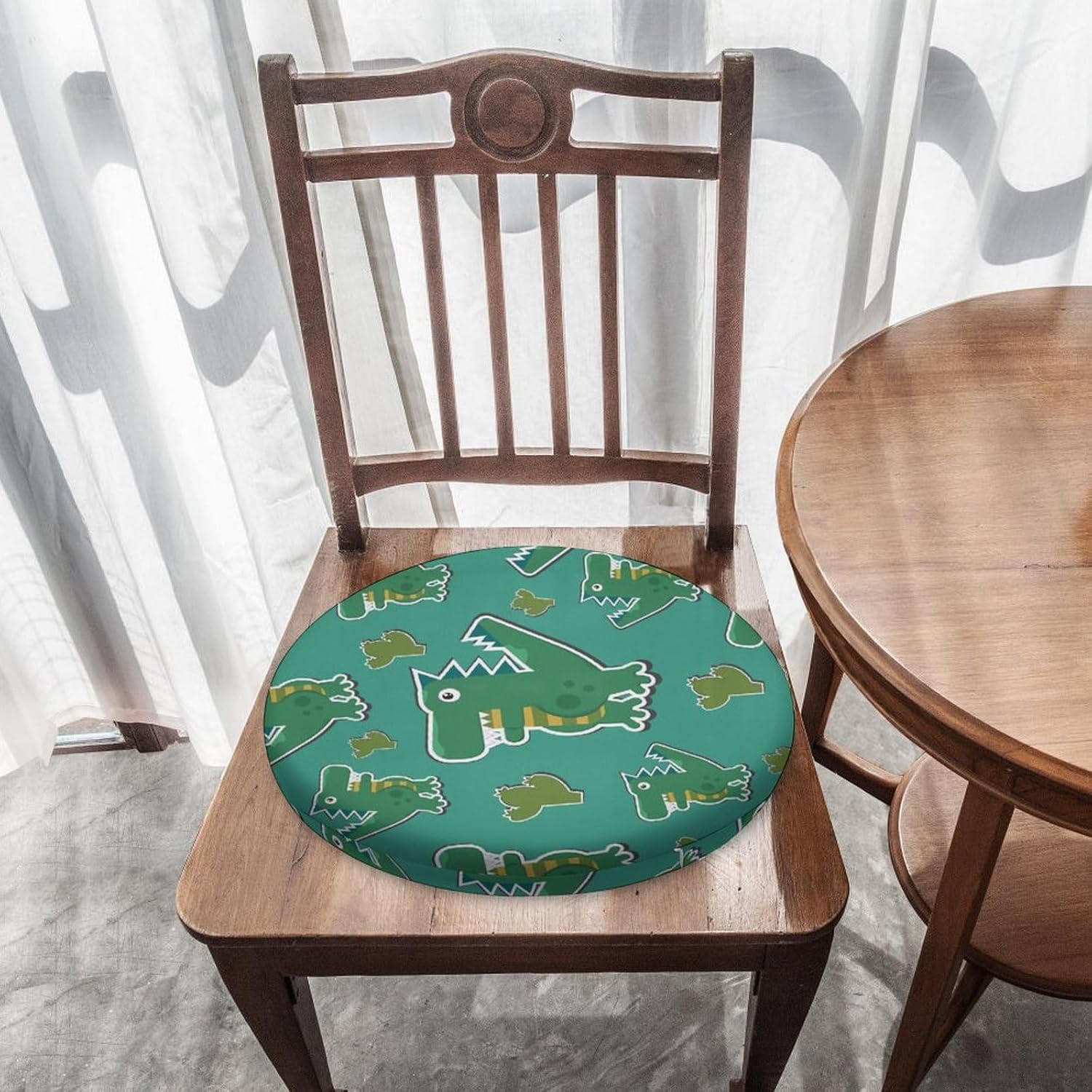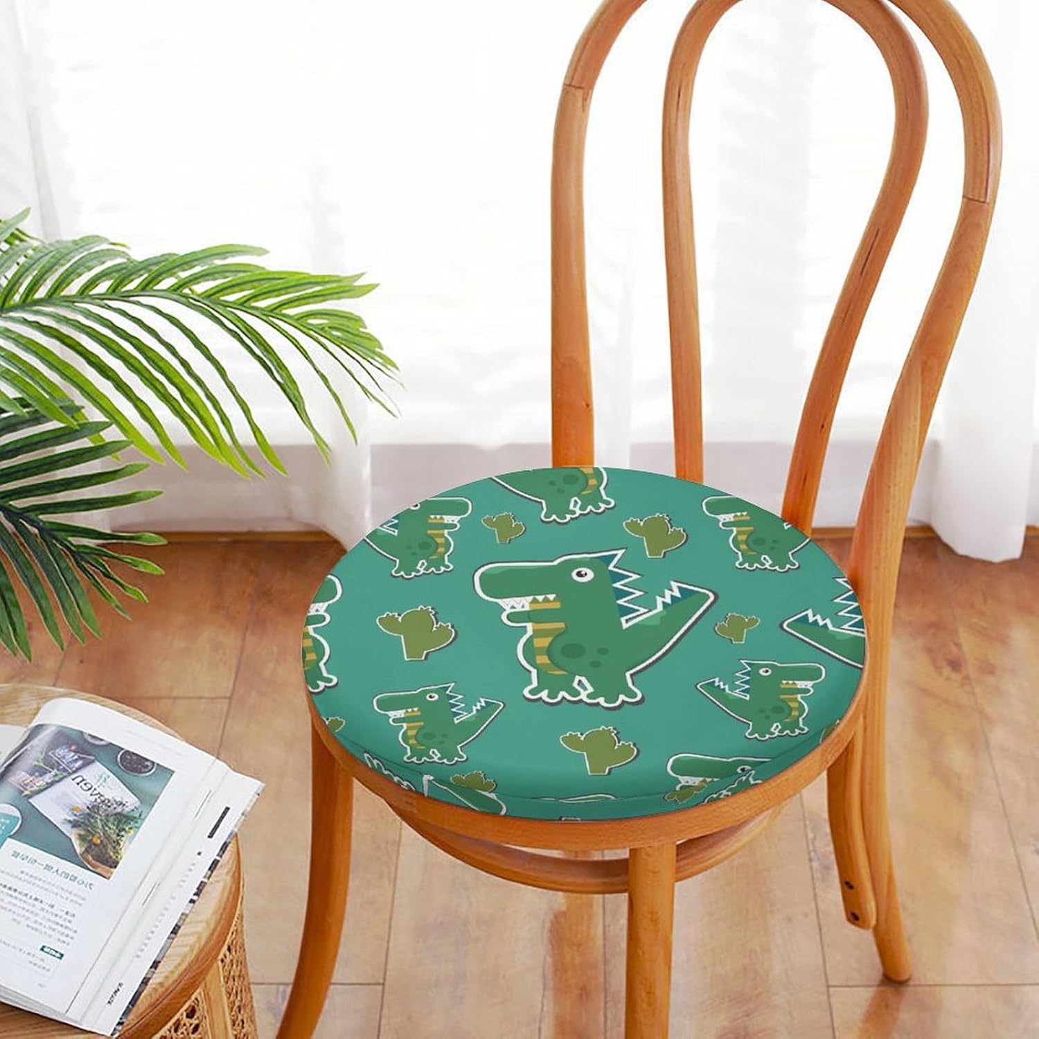 Round Seat Cushion Dinosaurs Green Cute Soft Memory Foam Chair Pads Non Slip Removable Washable Zipper Chair Cushions for Office Kitchen Dining Room Tatami 15.35in