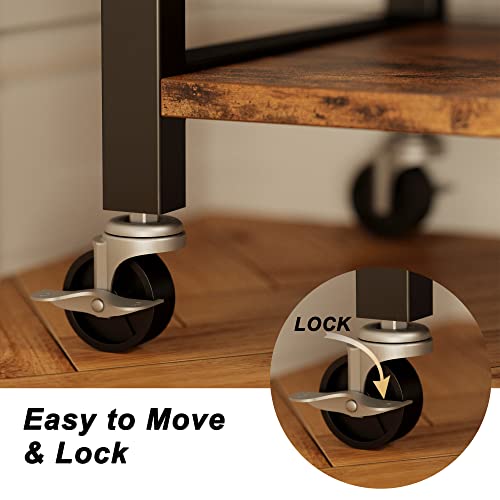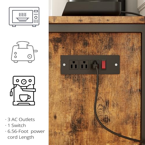 IRONCK Storage Cabinet with Charging Station and Wheels, 31.5" Kitchen Cart Cabinet with Shelves, Removable Cart Handle Cup Hook, Cupboard for Kitchen, Living Room, Industrial, Vintage Brown