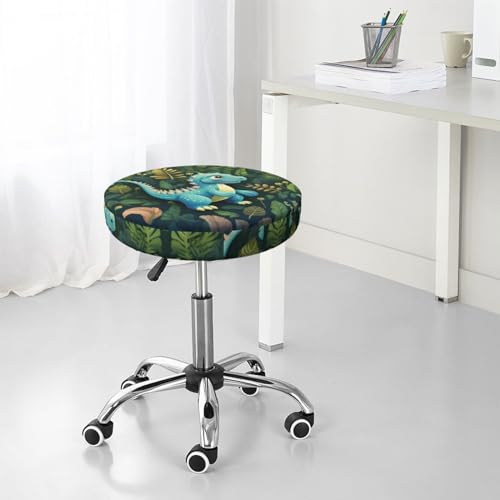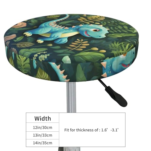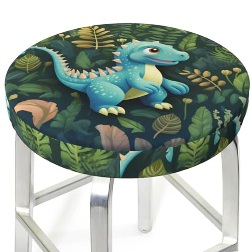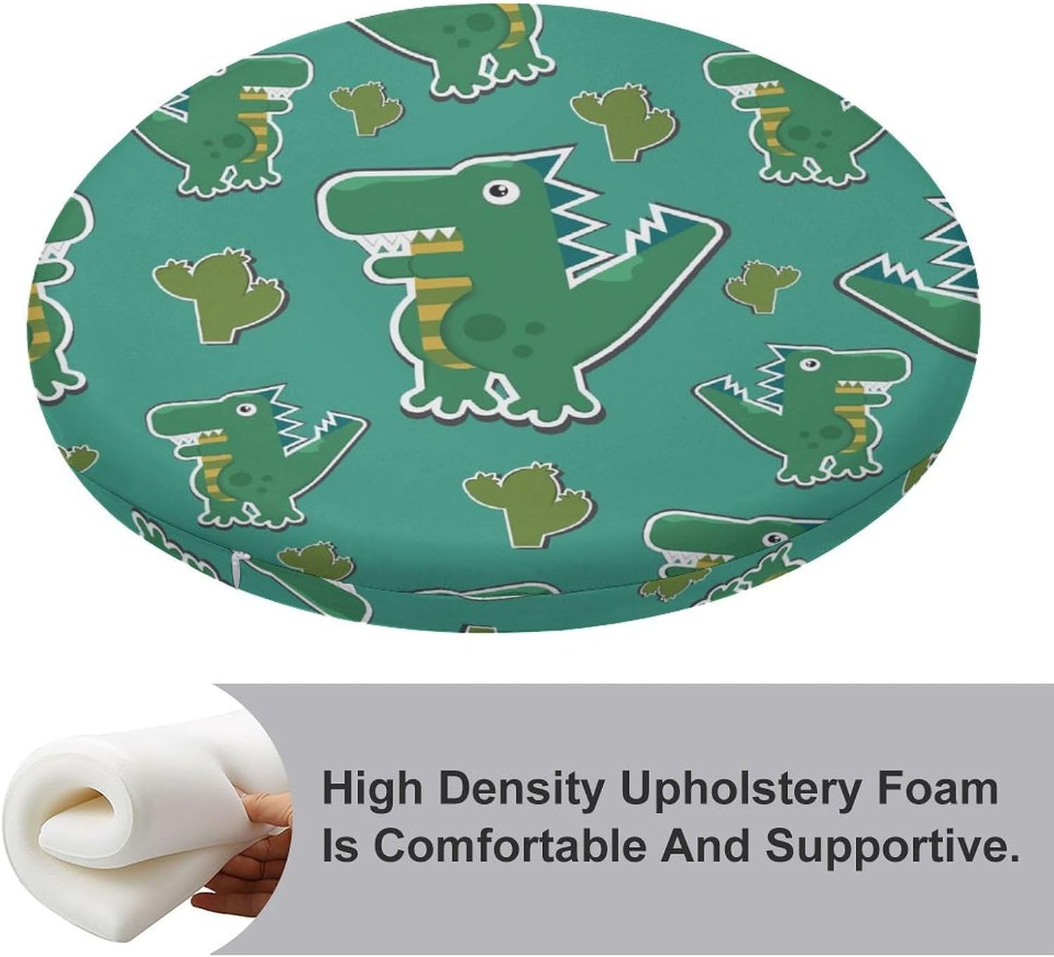 Cute Dinosaur Print Round Bar Chair Cushion Cover Suitable for Kitchen, Bar, Office, and Dining Chairs, 12 inch