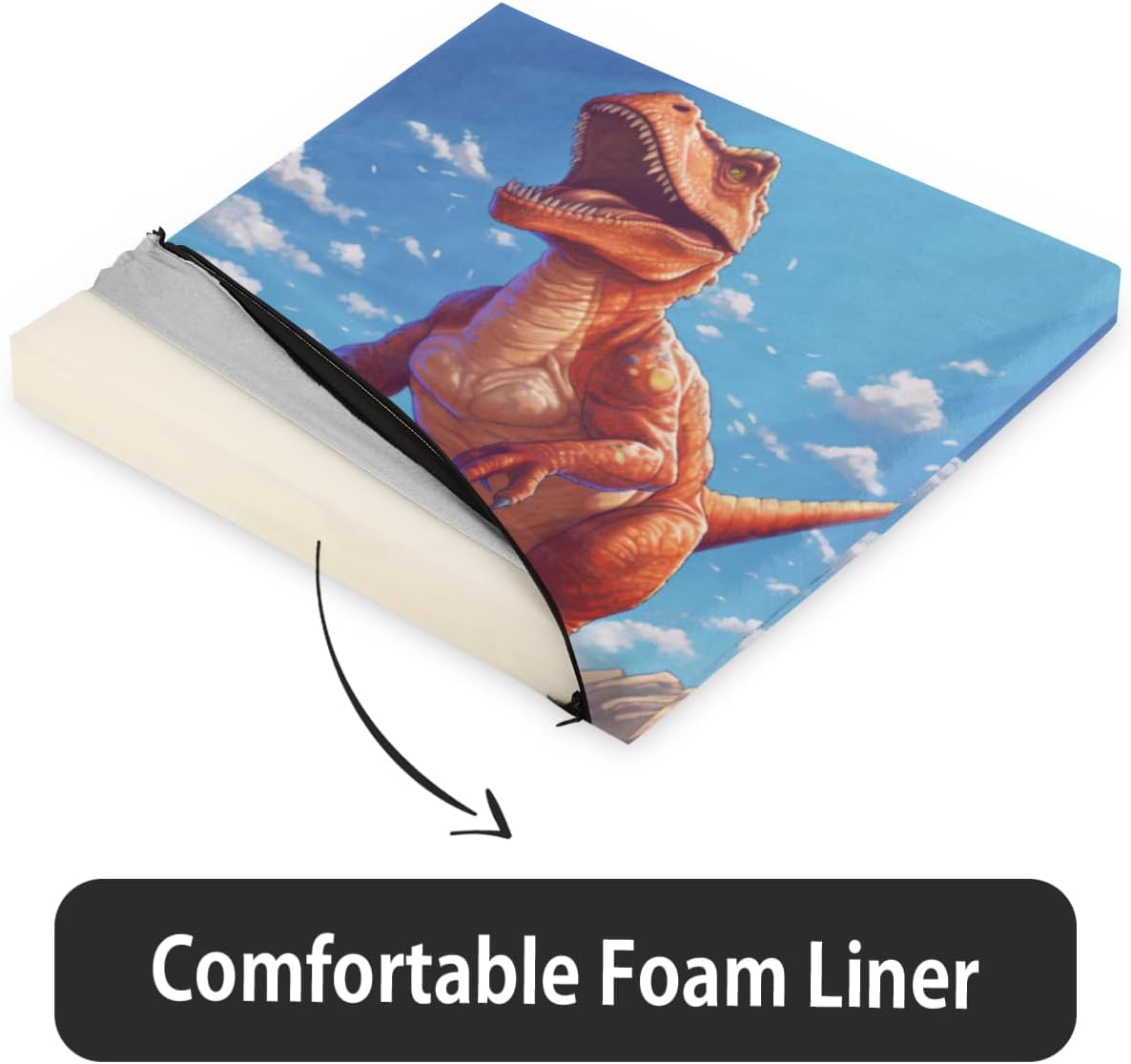 Dinosaurs Animals Sunny Square Seat Cushions 16 * 16 Inch High Density Sponge Filling Soft Comfortable Removable with Zipper Chair Cushion for Kitchen Dining Room Couch Office Chairs Car