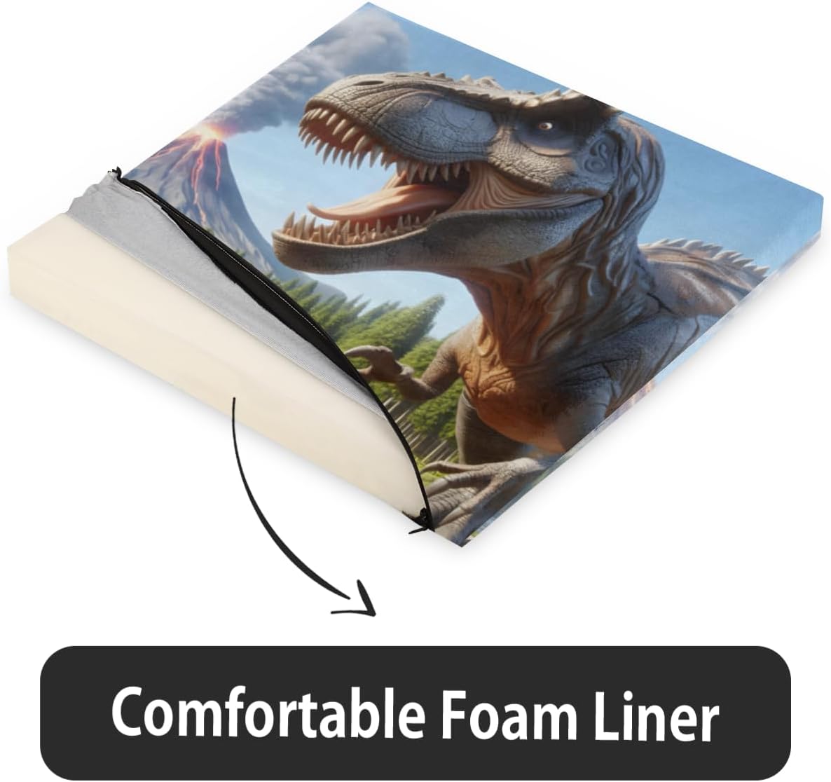 Dinosaur Woods Volcano Square Seat Cushions 16 * 16 Inch High Density Sponge Filling Soft Comfortable Removable with Zipper Chair Cushion for Kitchen Dining Room Couch Office Chairs Car