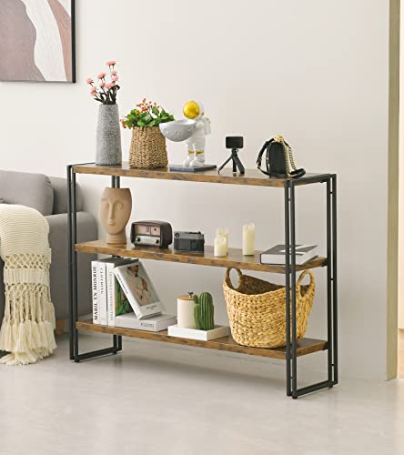 HCHQHS Bookshelf, 4-Tier Industrial Bookcase, Rustic Open Book Shelf, Freestanding Tall Bookshelves with Metal Frame