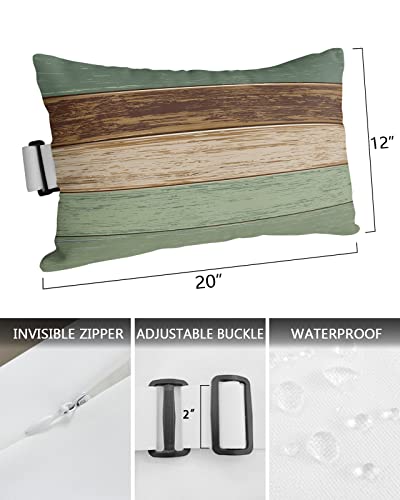 Outdoor Lumbar Pillow for Chaise Lounge Chair Dinosaur Ride Bike Cartoon Head Resting Pillow Ombre Green Geometric Moroccan Pillow with Adjustable Strap for Patio Recliner Office Sofa 2 Pack 12x20