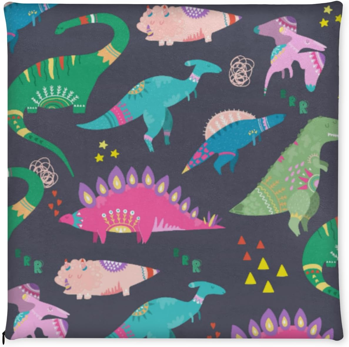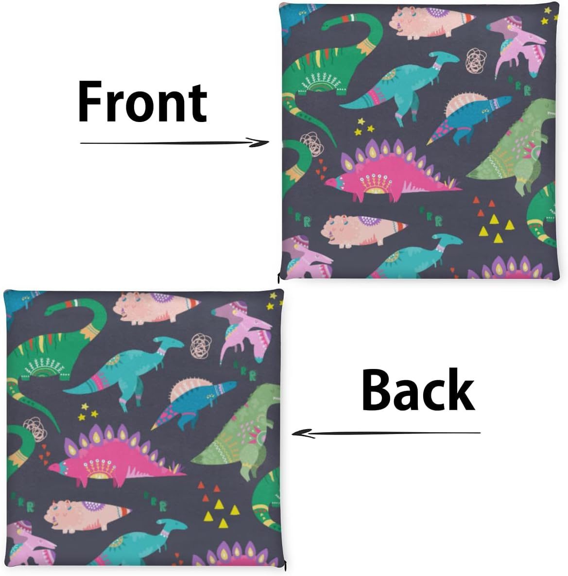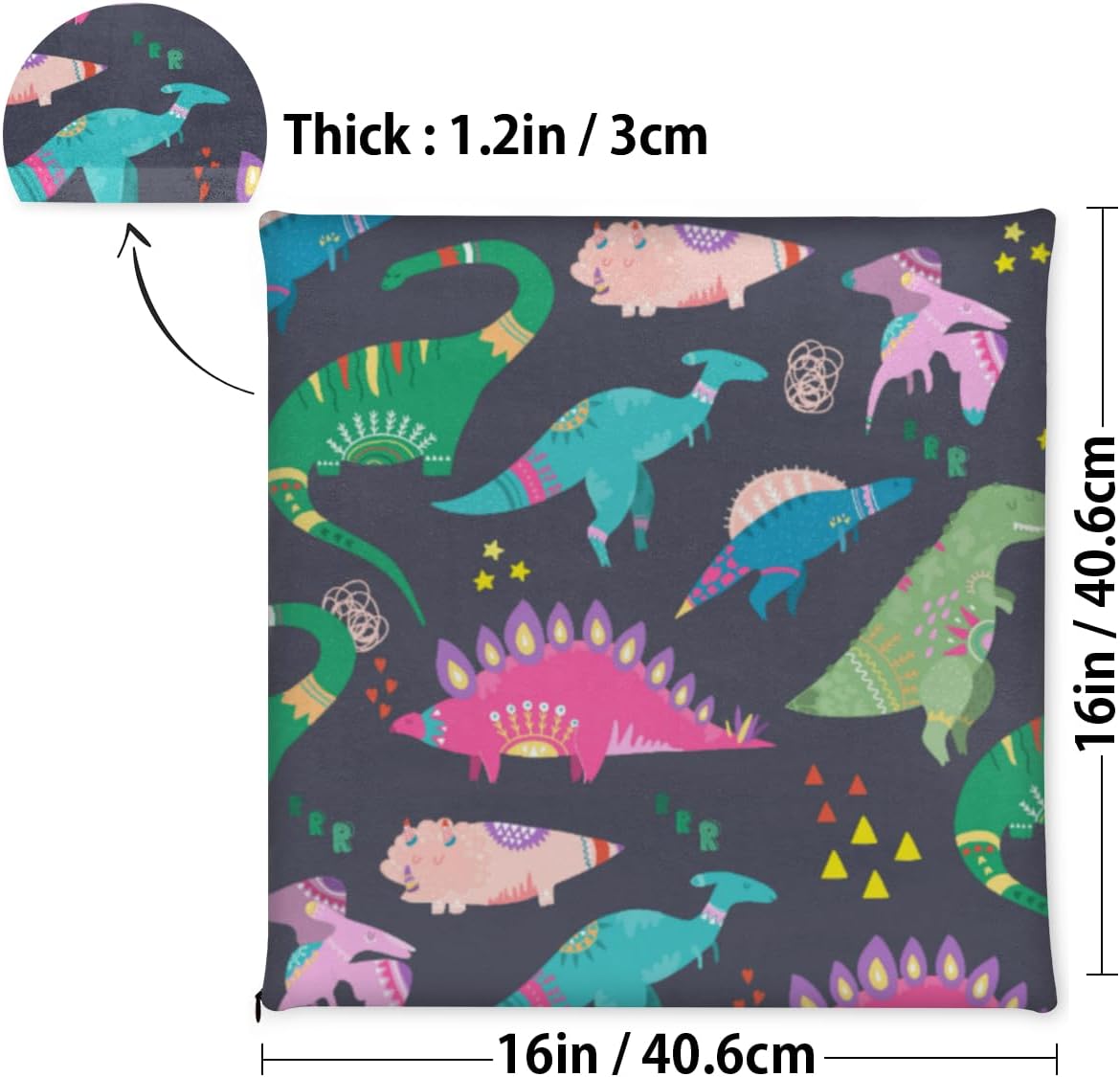 Colorful Cute Dinosaur Chair Cushion Soft Washable Foam Seat Cushion with Ties Square Chair Pad for Kitchen Dining Chairs Office Garden Patio Outdoor Indoor,16" x 16"1 Pack