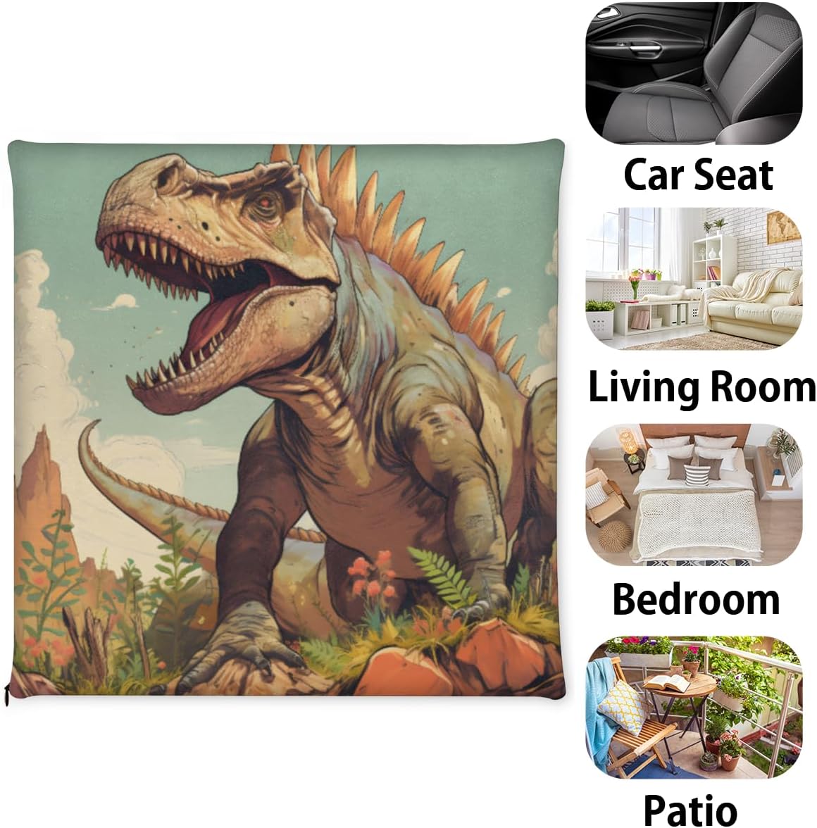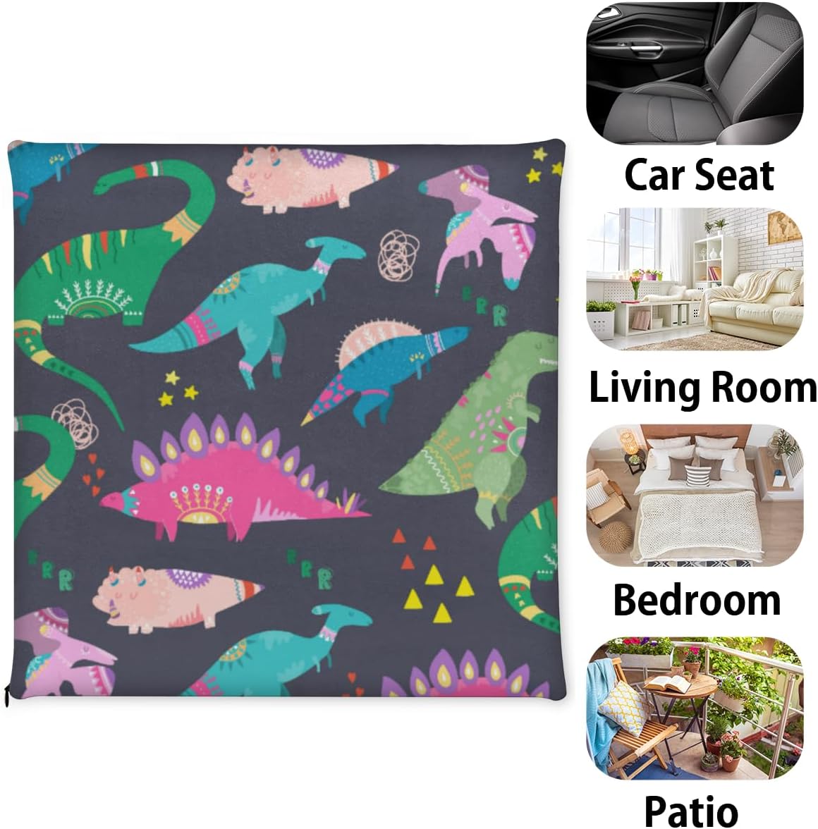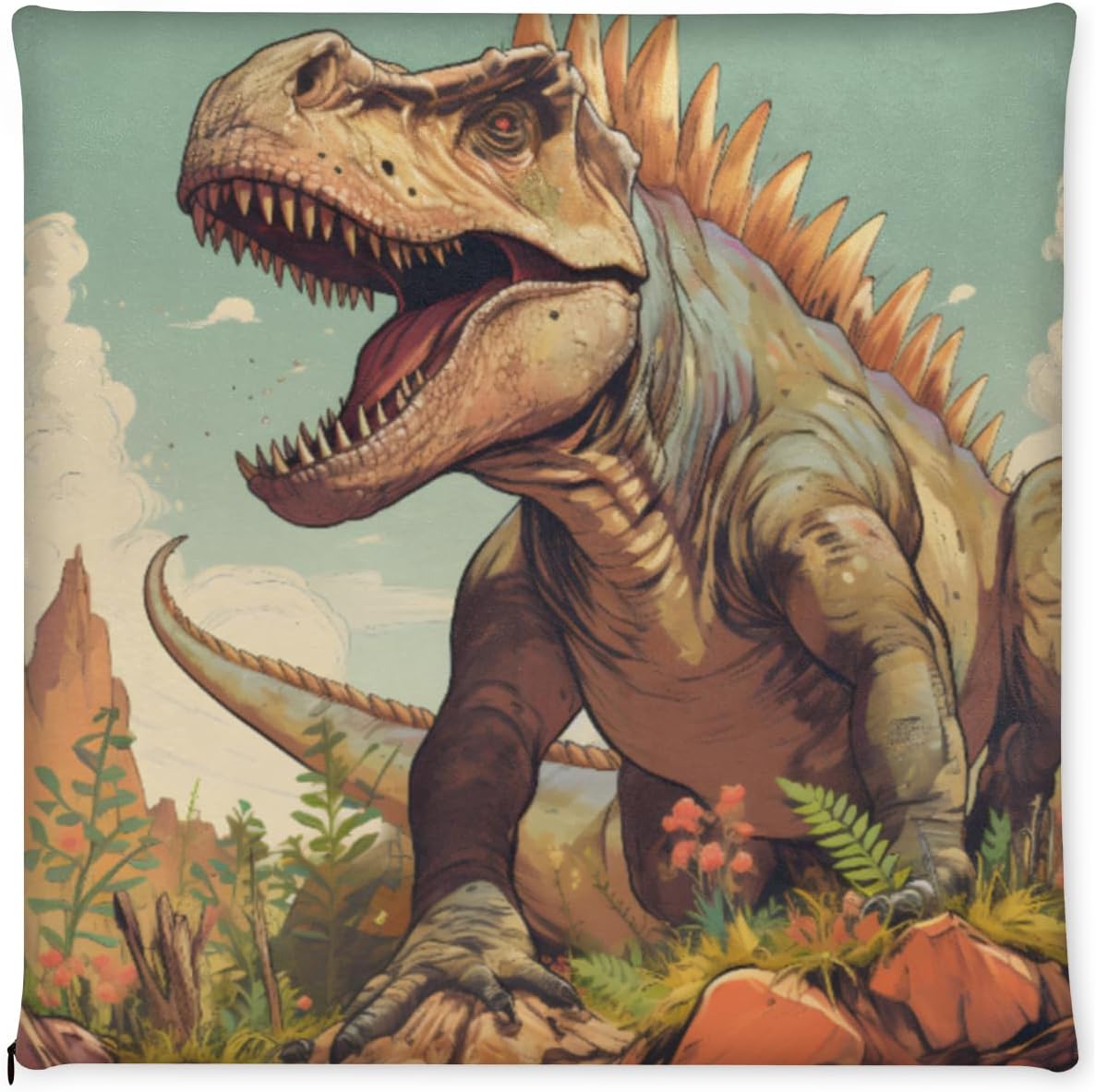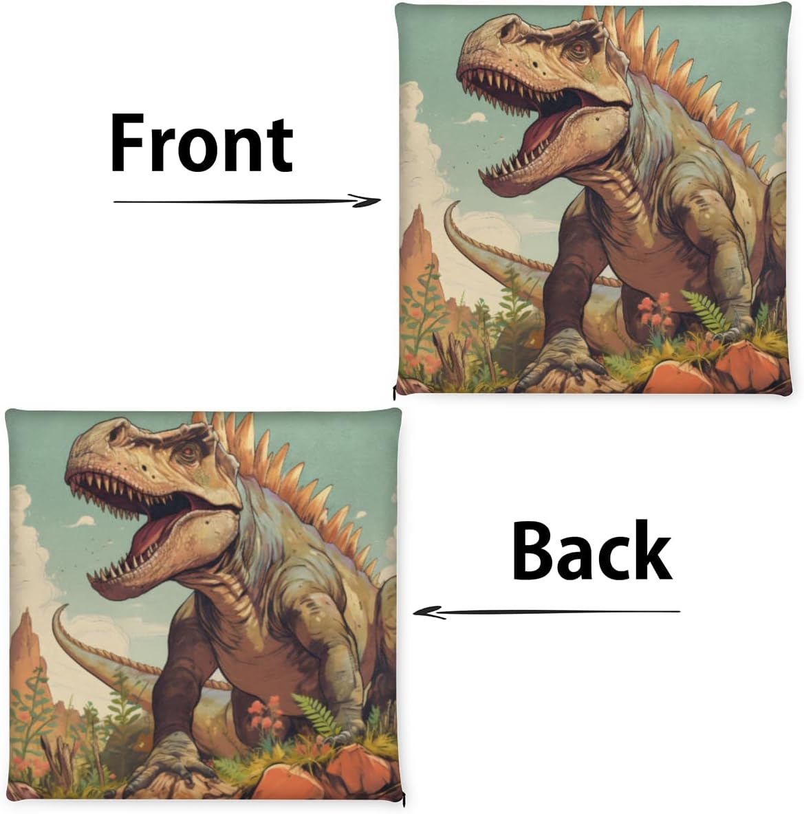 Dinosaur Hilltop Plant Square Seat Cushions 16 * 16 Inch High Density Sponge Filling Soft Comfortable Removable with Zipper Chair Cushion for Kitchen Dining Room Couch Office Chairs Car