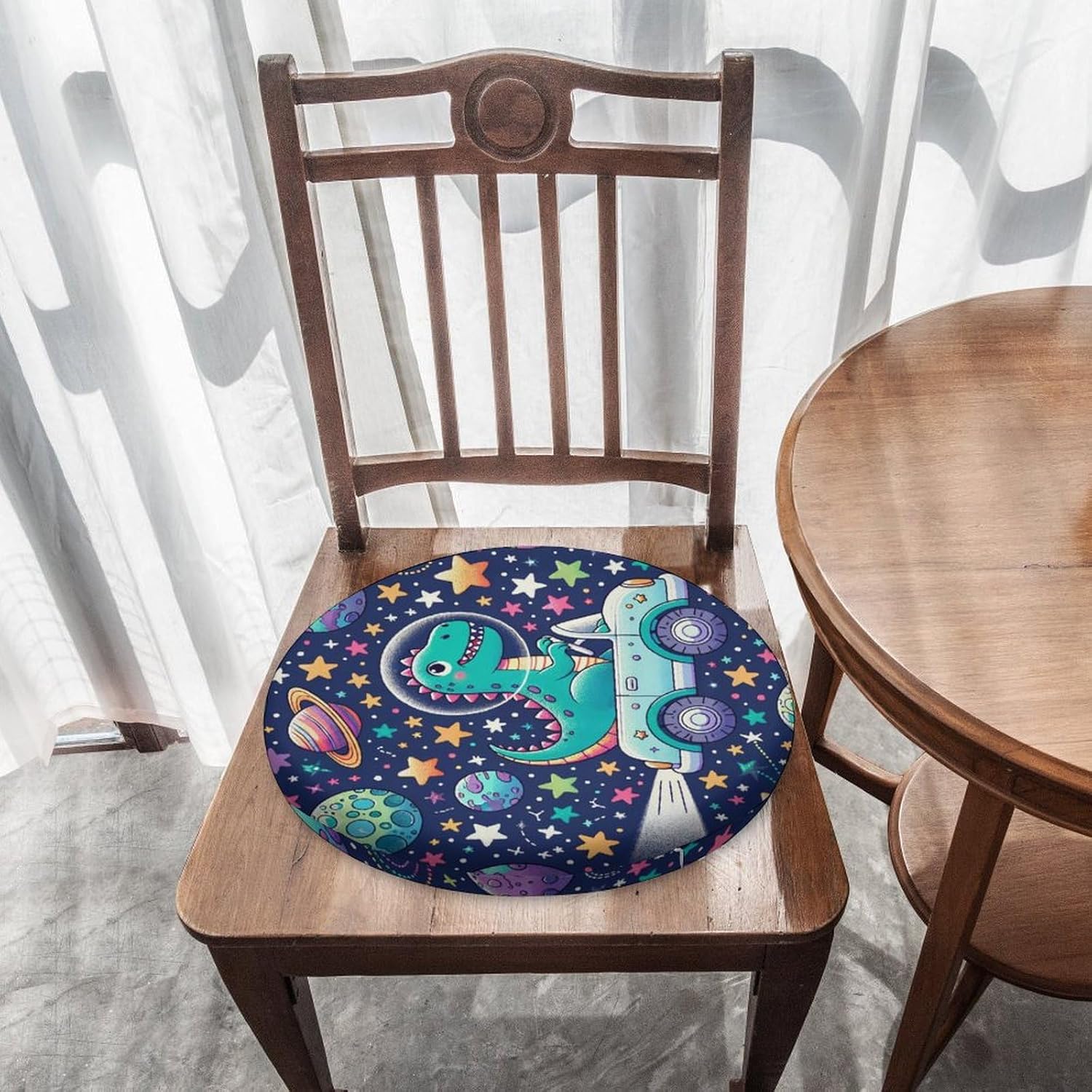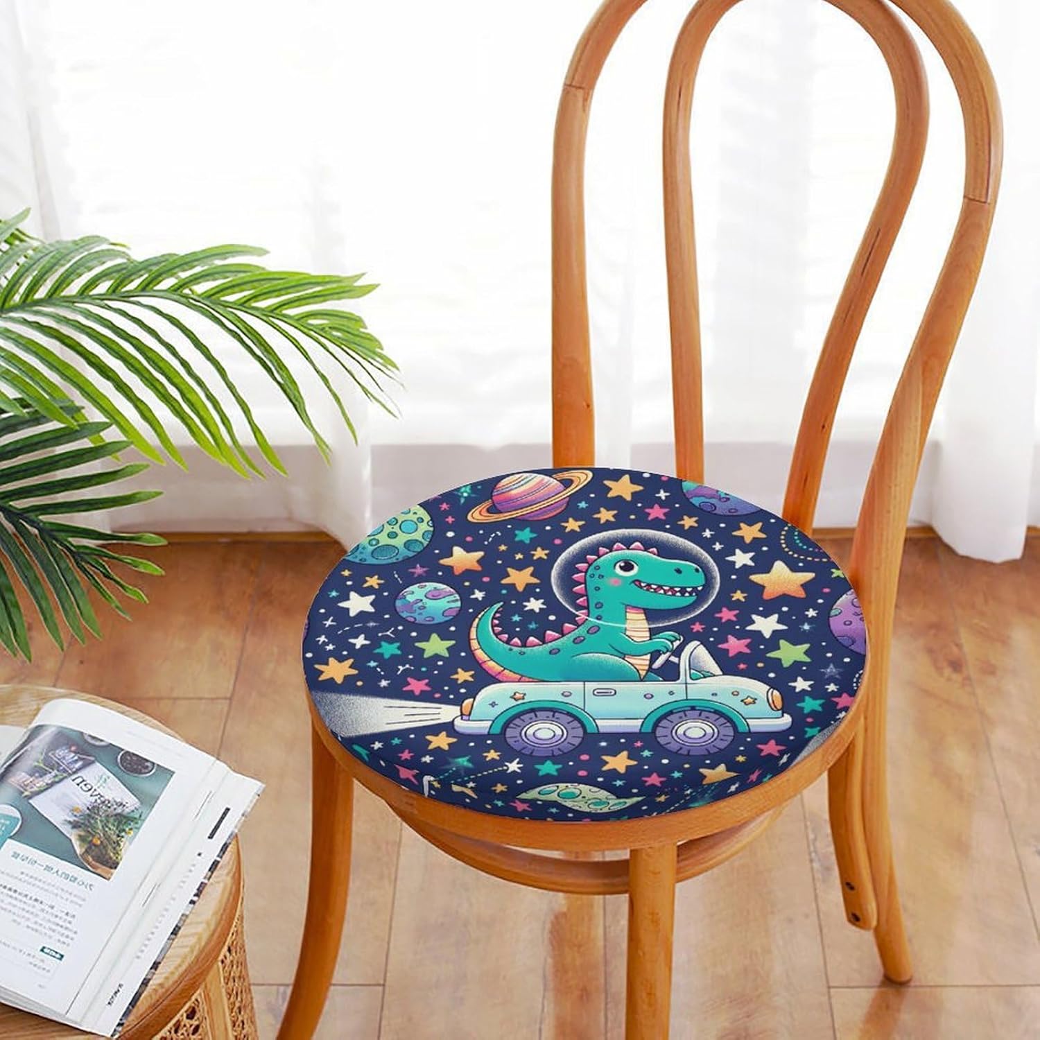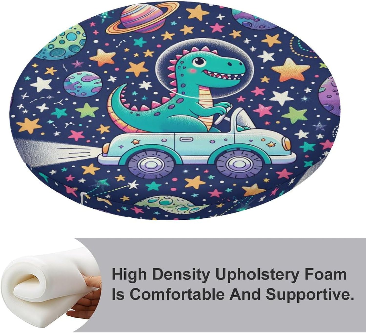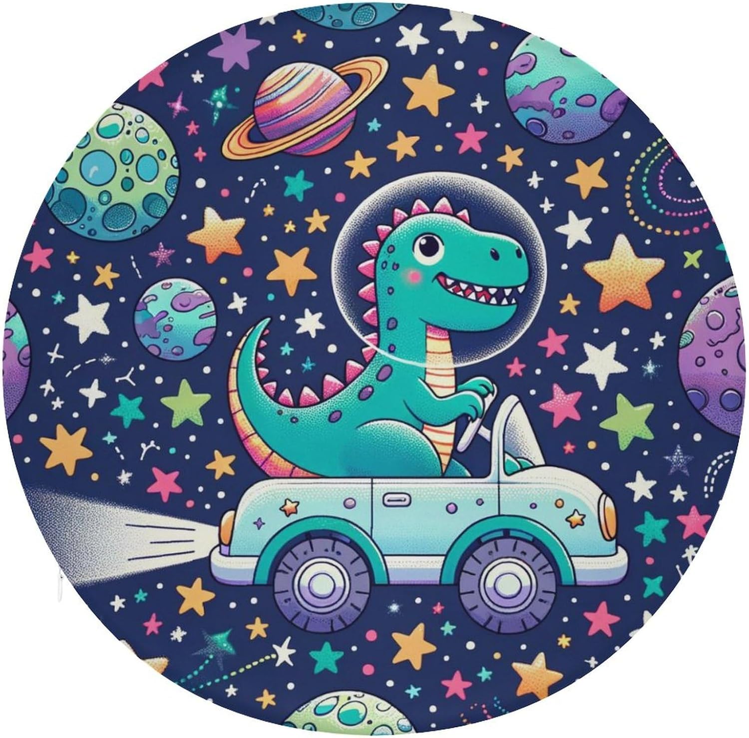 Round Seat Cushion Dinosaurs Space Traveling Soft Memory Foam Chair Pads Non Slip Removable Washable Zipper Chair Cushions for Office Kitchen Dining Room Tatami 15.35in