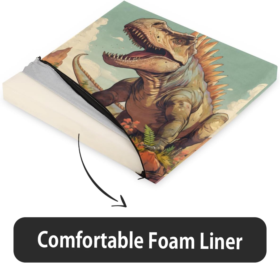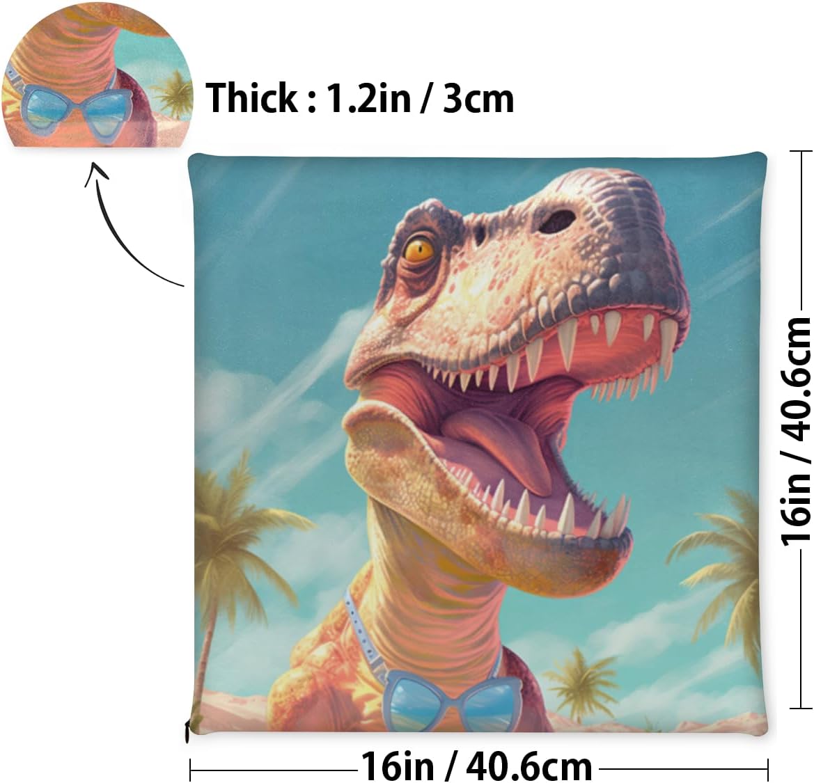 Dinosaur Coconut Desert Square Seat Cushions 16 * 16 Inch High Density Sponge Filling Soft Comfortable Removable with Zipper Chair Cushion for Kitchen Dining Room Couch Office Chairs Car