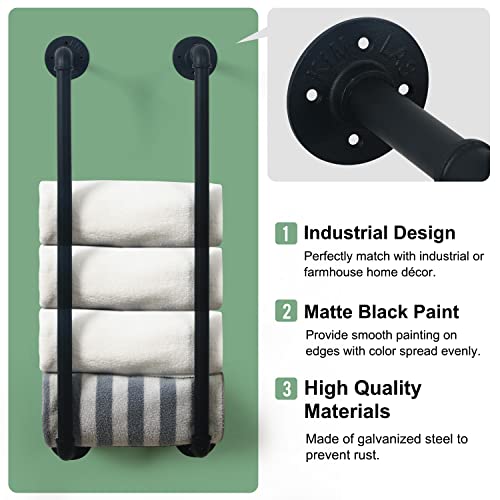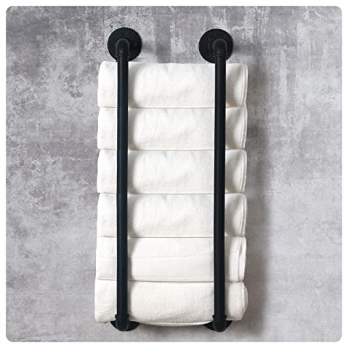 Industrial Pipe Towel Rack, Farmhouse Bathroom Towel Storage Holder, Vintage Style Towel Organization, Wall Mounted, Antique Silver