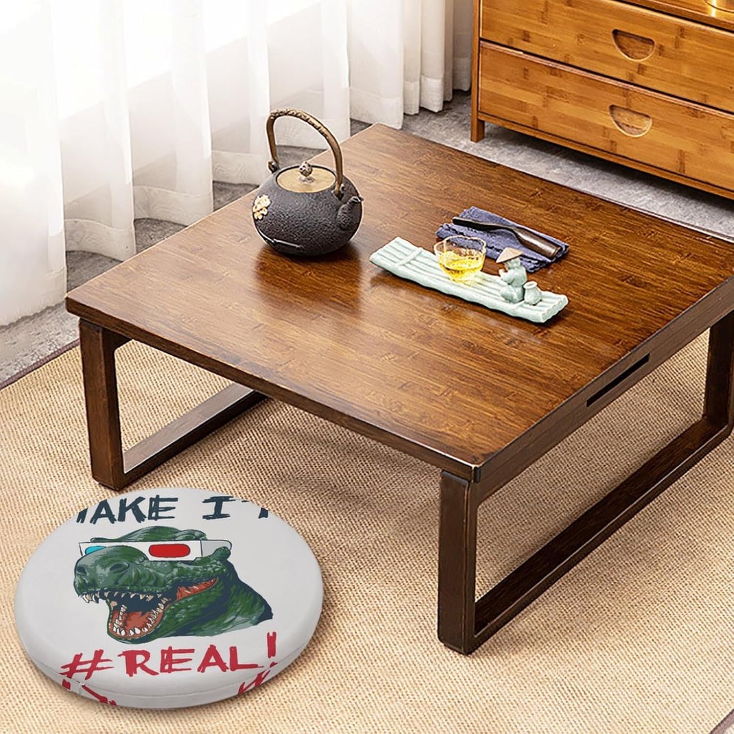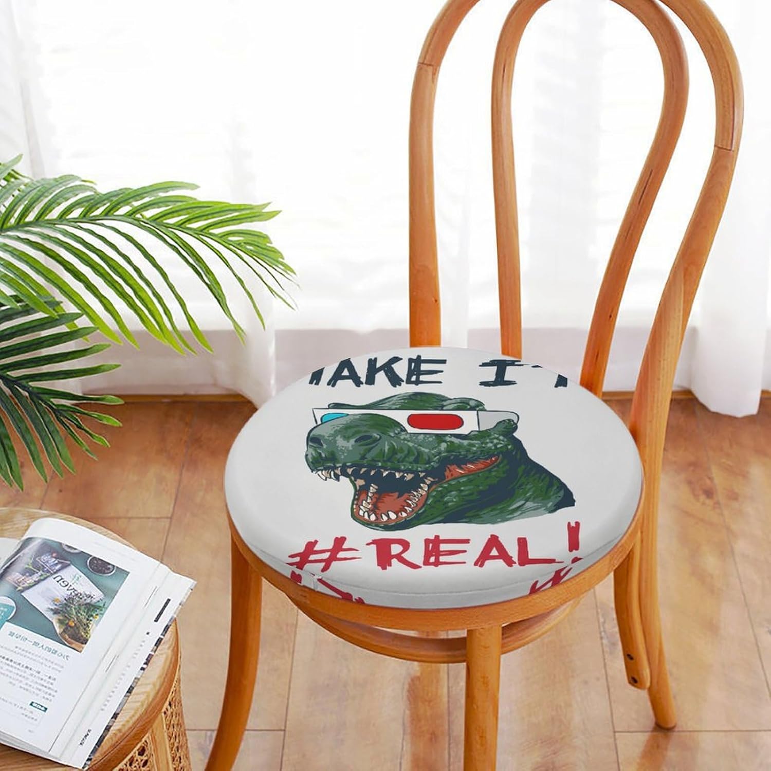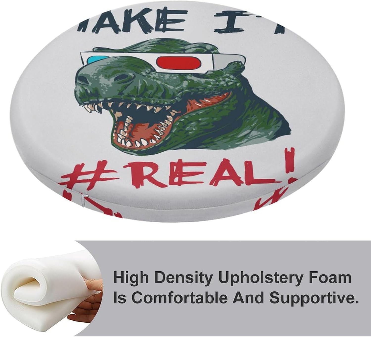 Round Seat Cushion Dinosaur Head 3D Glasses Soft Memory Foam Chair Pads Funny Word Non Slip Removable Washable Zipper Chair Cushions for Office Kitchen Dining Room Tatami 15.35in
