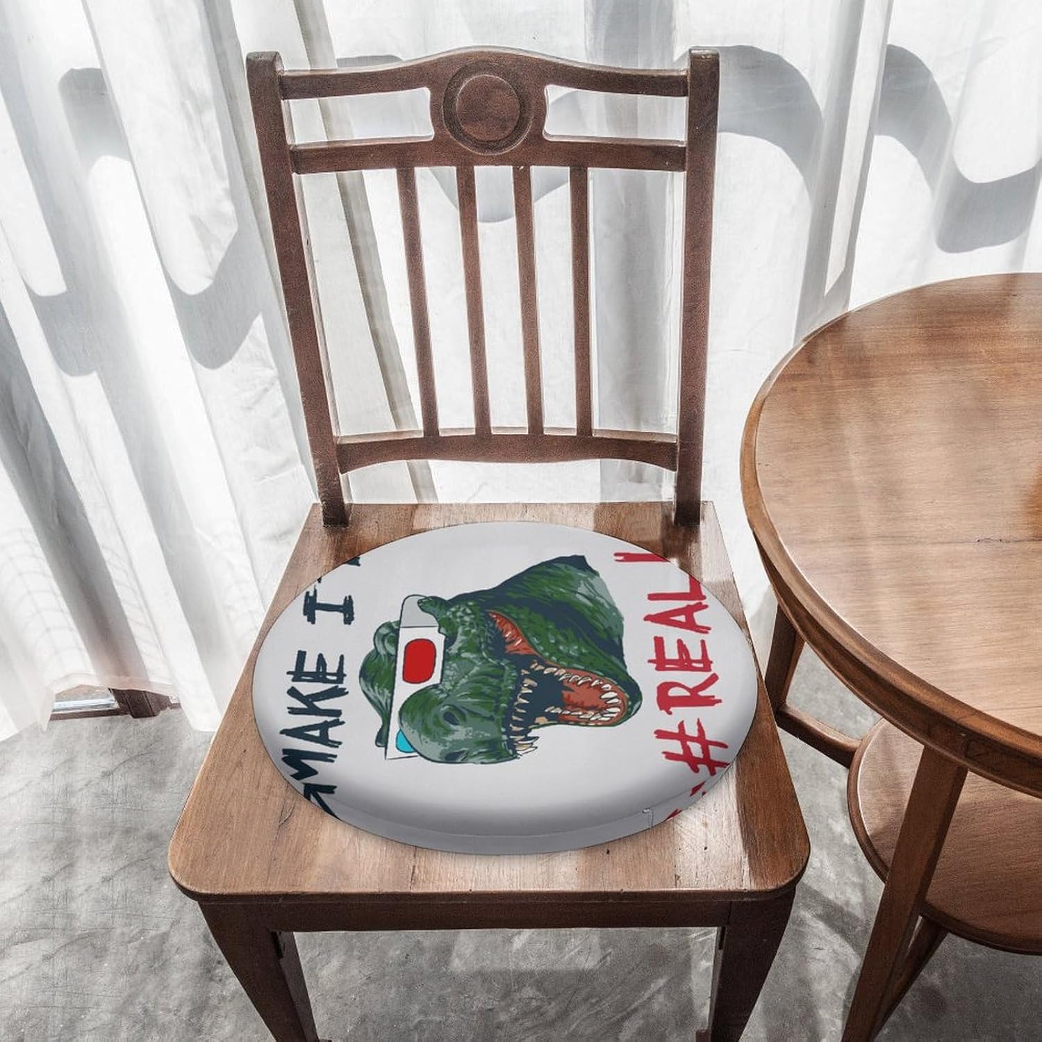 Round Chair Cushions for Dining Chairs, Flag Dinosaur Chair Pads for Kitchen Chairs, Non Skid Memory Foam Seat Cushions for Office Chair, Car Seat, Outdoor, Patio(14.5 Inches)